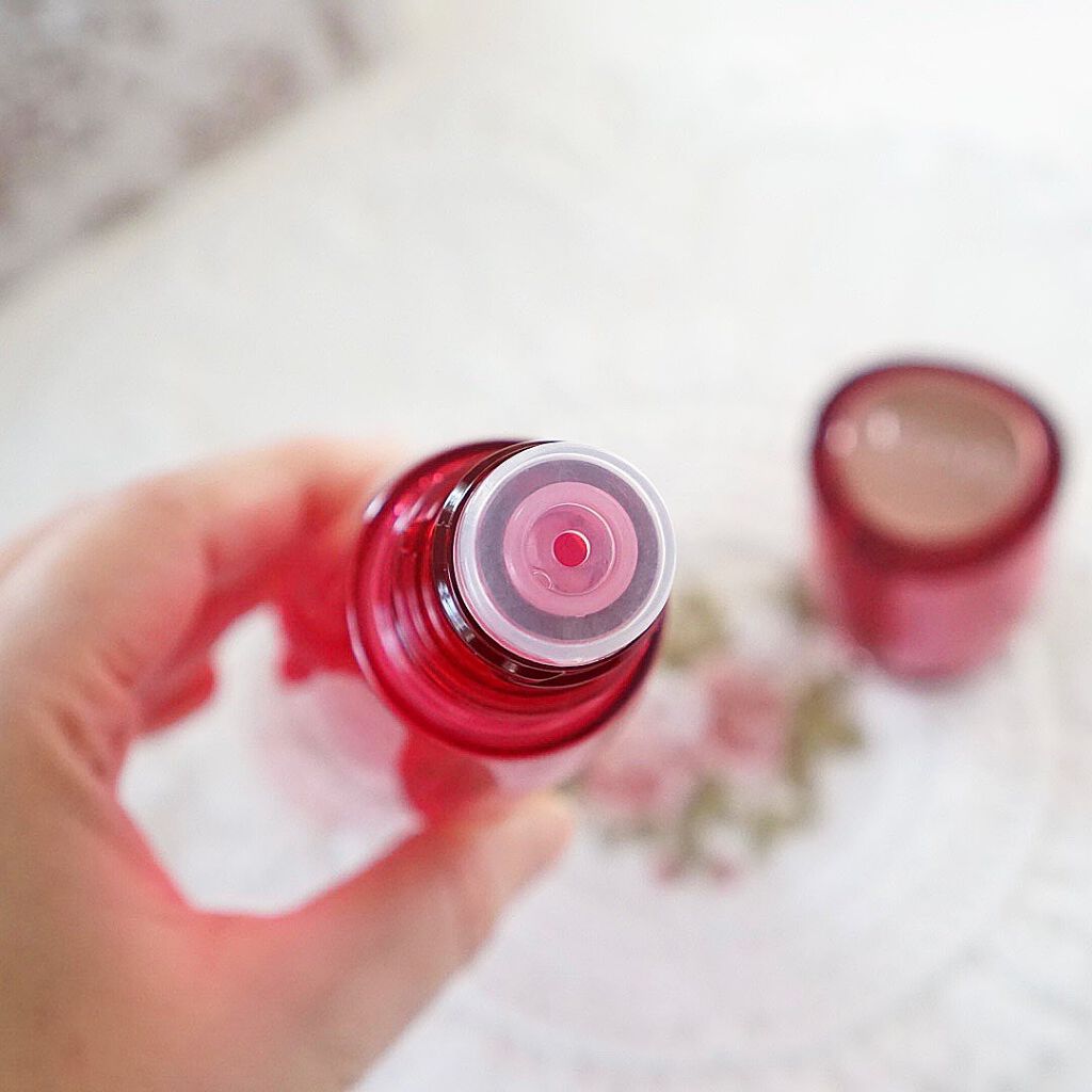 肌に潤いを与え、シミ・そばかすを防いでくもりのない肌へ導く美容液 いちごシロップみたいな見た目が好き、ビタミン12由来の色なんだそう とろみがあるけどメイク前にも使えるのがいいなと思うベタつきにくいテクスチャー