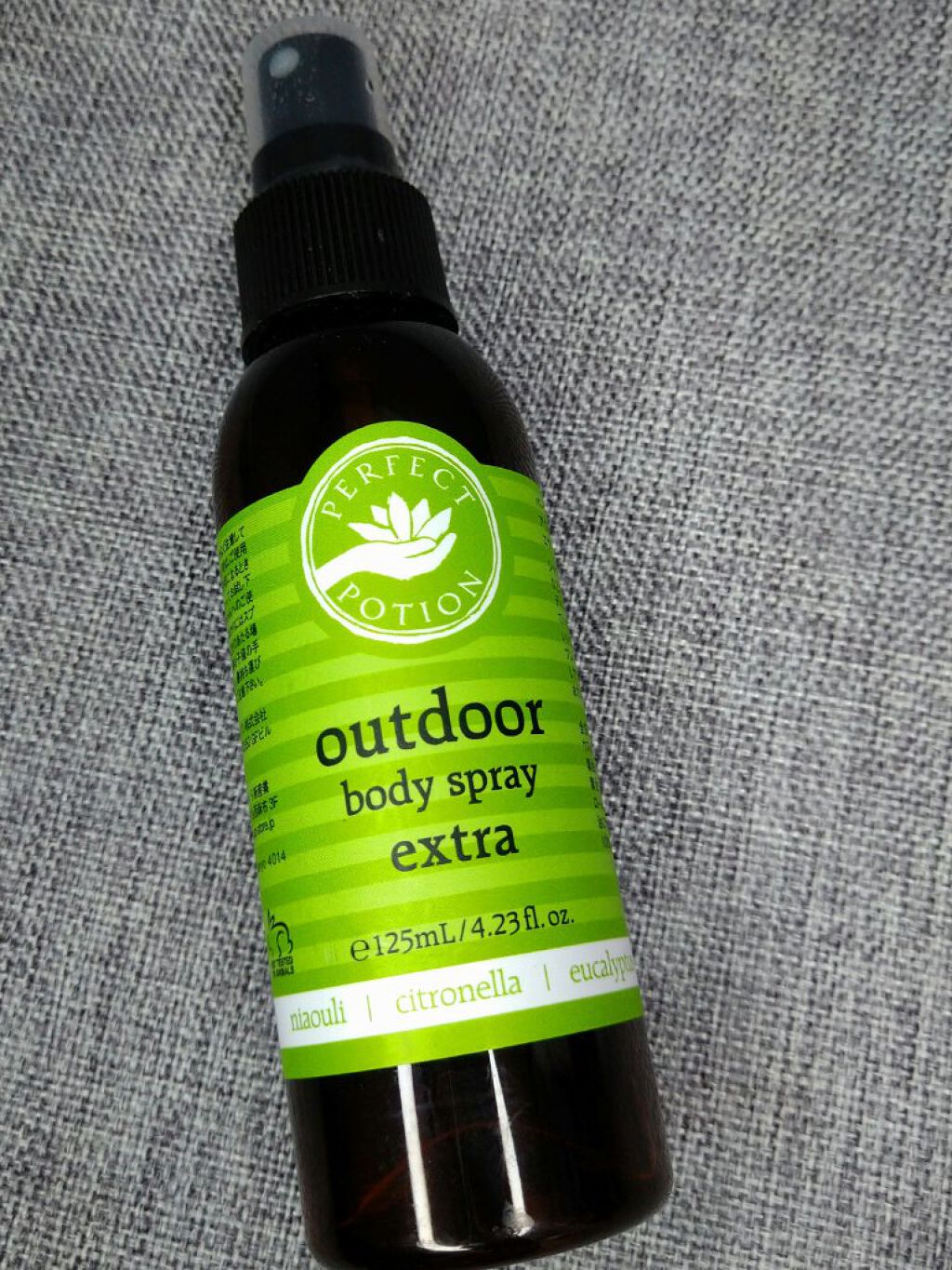 *PERFECTPOTIONアウトドアボディスプレーエクストラリニューアルで香りがより長持ちするようになり、しかも低アルコール処方で肌にやさしい、アウトドア用のスプレー。天然精油100%で、合成成分フリー。敏感肌の方も使えます。香りは、シトロ...