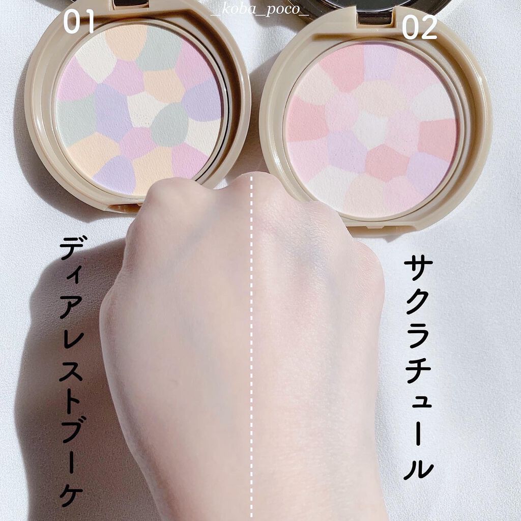 - <01 ディアレストブーケ> タルク、酸化チタン、メトキシケイヒ酸エチルヘキシル、マイカ、ラウロイルリシン、ワセリン、シリカ、ミリスチン酸亜鉛、リンゴ酸ジイソステアリル、(ビニルジメチコン/メチコンシルセスキオキサン)クロスポリマー、ヒドロキシアパタイト、DPG、含水シリカ、酸化亜鉛、酸化鉄、水酸化Al、エチルパラベン、メチルパラベン、イソステアリン酸ソルビタン、ジメチコン、エチルヘキシルグリセリン、カプリリルグリコール、水、ハイドロゲンジメチコン、デヒドロ酢酸Na、酸化スズ、ステアロイルグルタミン酸2Na、BG、アルガニアスピノサ核油、スクワラン、ホホバ種子油、水添ポリイソブテン、PG、BHT、エタノール、ヒアルロン酸Na、フェノキシエタノール、ユキノシタエキス、チャ葉エキス、カミツレ花エキス、センチフォリアバラ花エキス、クエン酸、水溶性コラーゲン、アルニカ花エキス、セイヨウオトギリソウ花/葉/茎エキス、セイヨウキズタ葉/茎エキス、セイヨウトチノキ種子エキス、ハマメリス葉エキス、ブドウ葉エキス、クエン酸Na、グンジョウ、黄4、赤226 <02 サクラチュール> タルク、酸化チタン、メトキシケイヒ酸エチルヘキシル、マイカ、ラウロイルリシン、ワセリン、シリカ、ミリスチン酸亜鉛、リンゴ酸ジイソステアリル、(ビニルジメチコン/メチコンシルセスキオキサン)クロスポリマー、ヒドロキシアパタイト、DPG、含水シリカ、酸化亜鉛、水酸化Al、エチルパラベン、メチルパラベン、イソステアリン酸ソルビタン、ジメチコン、エチルヘキシルグリセリン、カプリリルグリコール、水、酸化鉄、ハイドロゲンジメチコン、デヒドロ酢酸Na、酸化スズ、ステアロイルグルタミン酸2Na、BG、アルガニアスピノサ核油、スクワラン、ホホバ種子油、水添ポリイソブテン、PG、BHT、エタノール、ヒアルロン酸Na、フェノキシエタノール、ユキノシタエキス、チャ葉エキス、カミツレ花エキス、センチフォリアバラ花エキス、クエン酸、水溶性コラーゲン、アルニカ花エキス、セイヨウオトギリソウ花/葉/茎エキス、セイヨウキズタ葉/茎エキス、セイヨウトチノキ種子エキス、ハマメリス葉エキス、ブドウ葉エキス、クエン酸Na、グンジョウ、赤226、黄4 <03 プルメリアリース> タルク、酸化チタン、メトキシケイヒ酸エチルヘキシル、マイカ、ラウロイルリシン、ワセリン、シリカ、ミリスチン酸亜鉛、リンゴ酸ジイソステアリル、(ビニルジメチコン/メチコンシルセスキオキサン)クロスポリマー、ヒドロキシアパタイト、DPG、含水シリカ、酸化亜鉛、エチルパラベン、メチルパラベン、イソステアリン酸ソルビタン、ジメチコン、水酸化Al、カプリリルグリコール、エチルヘキシルグリセリン、水、ハイドロゲンジメチコン、デヒドロ酢酸Na、酸化スズ、BG、ステアロイルグルタミン酸2Na、アルガニアスピノサ核油、スクワラン、ホホバ種子油、水添ポリイソブテン、PG、BHT、エタノール、ヒアルロン酸Na、フェノキシエタノール、ユキノシタエキス、チャ葉エキス、カミツレ花エキス、トコフェロール、センチフォリアバラ花エキス、クエン酸、水溶性コラーゲン、アルニカ花エキス、セイヨウオトギリソウ花/葉/茎エキス、セイヨウキズタ葉/茎エキス、セイヨウトチノキ種子エキス、ハマメリス葉エキス、ブドウ葉エキス、クエン酸Na、黄4、酸化鉄、グンジョウ、マンガンバイオレット、赤226、カオリン、コンジョウ <01 ディアレストブーケ(リフィル)> タルク、酸化チタン、メトキシケイヒ酸エチルヘキシル、マイカ、ラウロイルリシン、ワセリン、シリカ、ミリスチン酸亜鉛、リンゴ酸ジイソステアリル、(ビニルジメチコン/メチコンシルセスキオキサン)クロスポリマー、ヒドロキシアパタイト、DPG、含水シリカ、酸化亜鉛、酸化鉄、水酸化Al、エチルパラベン、メチルパラベン、イソステアリン酸ソルビタン、ジメチコン、エチルヘキシルグリセリン、カプリリルグリコール、水、ハイドロゲンジメチコン、デヒドロ酢酸Na、酸化スズ、ステアロイルグルタミン酸2Na、BG、アルガニアスピノサ核油、スクワラン、ホホバ種子油、水添ポリイソブテン、PG、BHT、エタノール、ヒアルロン酸Na、フェノキシエタノール、ユキノシタエキス、チャ葉エキス、カミツレ花エキス、センチフォリアバラ花エキス、クエン酸、水溶性コラーゲン、アルニカ花エキス、セイヨウオトギリソウ花/葉/茎エキス、セイヨウキズタ葉/茎エキス、セイヨウトチノキ種子エキス、ハマメリス葉エキス、ブドウ葉エキス、クエン酸Na、グンジョウ、黄4、赤226 <02 サクラチュール(リフィル)> タルク、酸化チタン、メトキシケイヒ酸エチルヘキシル、マイカ、ラウロイルリシン、ワセリン、シリカ、ミリスチン酸亜鉛、リンゴ酸ジイソステアリル、(ビニルジメチコン/メチコンシルセスキオキサン)クロスポリマー、ヒドロキシアパタイト、DPG、含水シリカ、酸化亜鉛、水酸化Al、エチルパラベン、メチルパラベン、イソステアリ