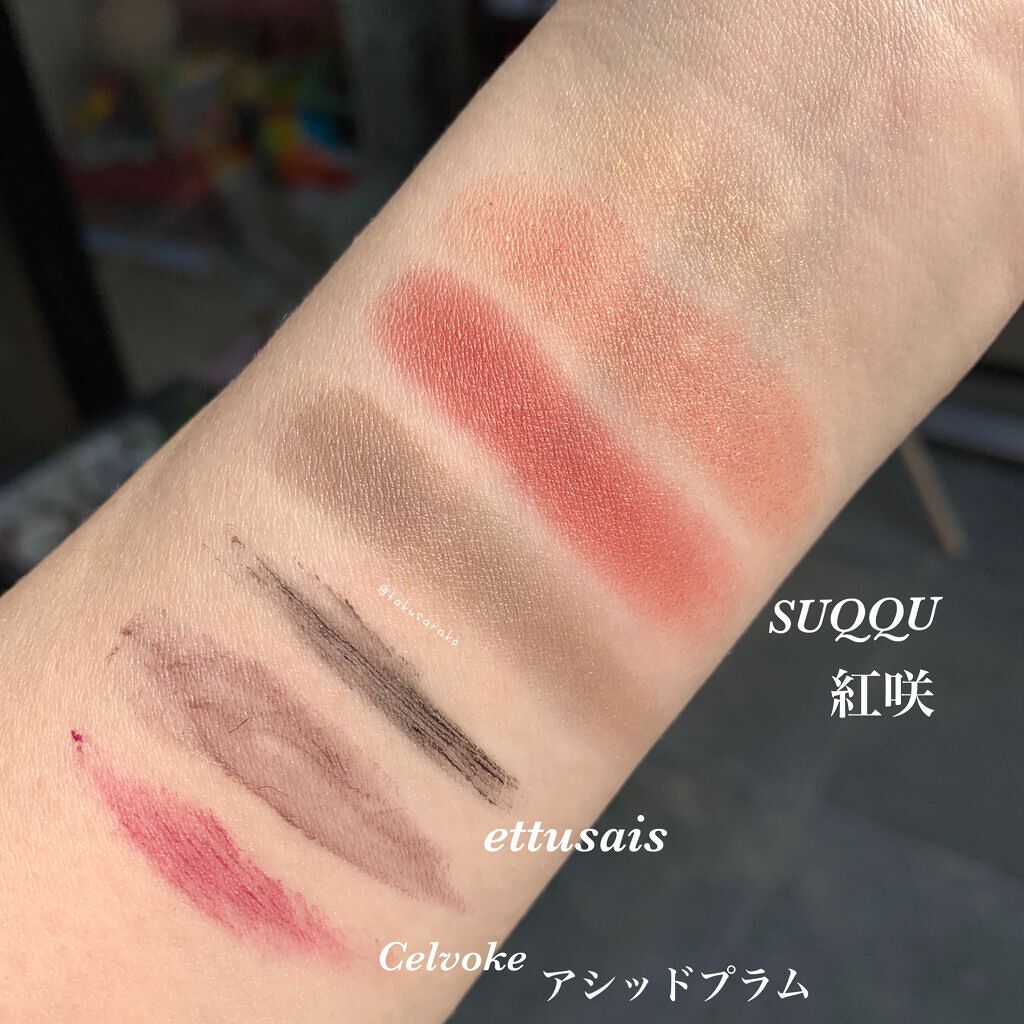 今日のメイク日記✍SUQQUデザイニングカラーアイズ04絢撫子-AYANADESHIKO私、興奮しています。ごめんなさい、伝えたいこと多くて長文な上にもう皆さん、見てるだろうけどスウォッチとかいろいろ写真のせちゃったのさ😂普段ならメイク写真撮...