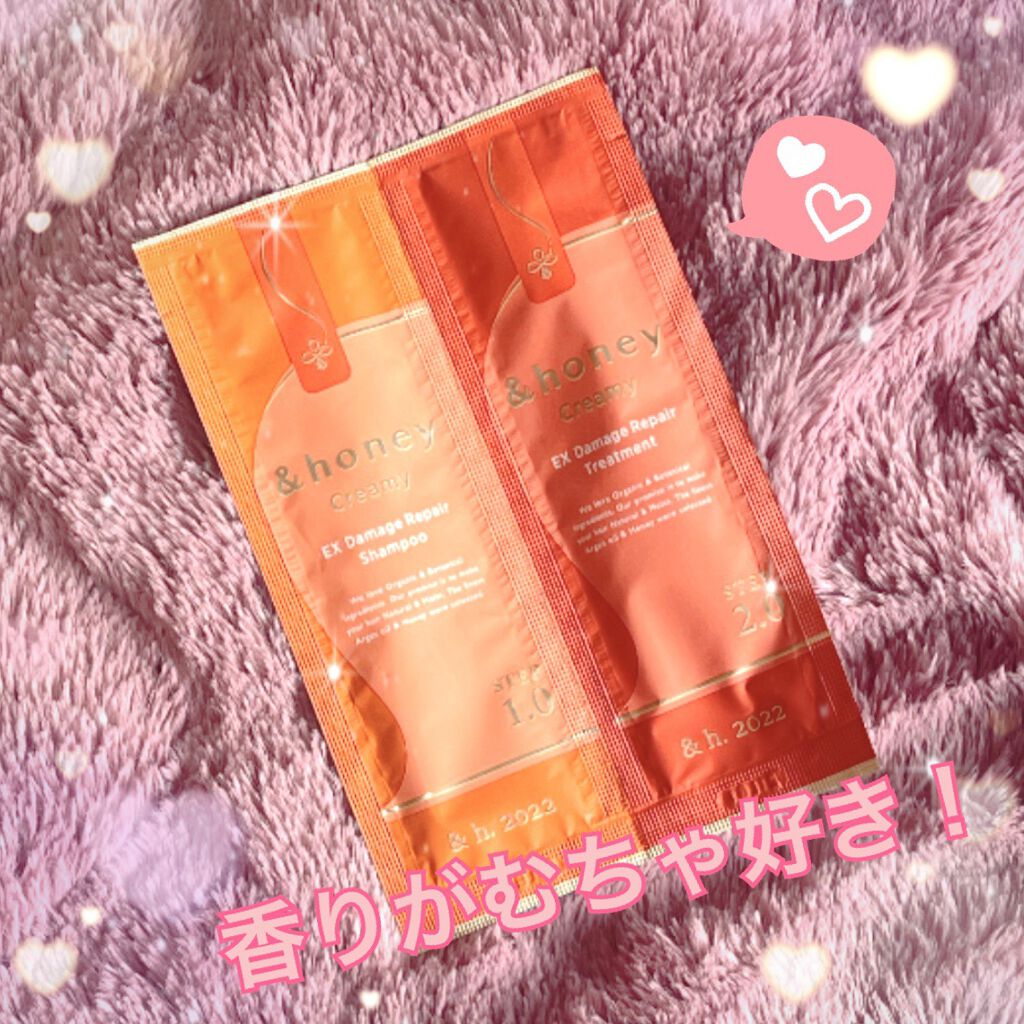 &honeyCreamyEXダメージリペアシャンプー1.0ヘアトリートメント2.0【詰替用】アエナで2つ合わせて、約800円ほどで購入しました!●シャンプーモッタリとした重めのテクスチャです。甘い香りがするので、最初は少しキツかったです。持続...