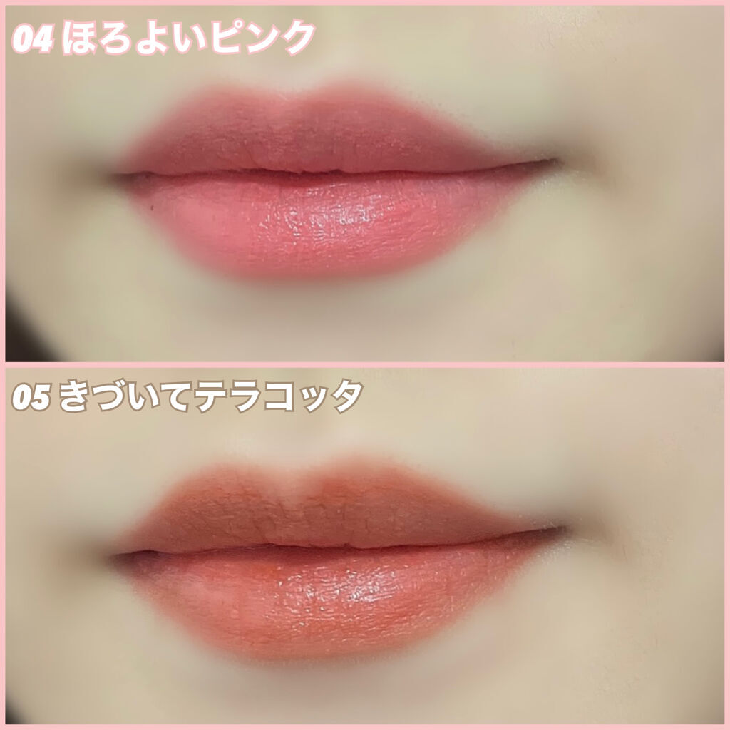 - <101 涙ショコラ(限定)> ジメチコン、シクロペンタシロキサン、イソドデカン、(ジメチコン/ビニルジメチコン)クロスポリマー、ジメチコンクロスポリマー、トリイソステアリン酸ポリグリセリル-2、(ビニルジメチコン/メチコンシルセスキオキサン)クロスポリマー、トリメチルシロキシケイ酸、黄4、酸化チタン、1,2-ヘキサンジオール、PEG-10ジメチコン、酢酸トコフェロール、酸化鉄、シクロヘキサシロキサン、ジステアルジモニウムヘクトライト、エチルヘキシルグリセリン、赤色202号、炭酸プロピレン、コメヌカ油、カニナバラ果実油、水、トコフェロール、ヒアルロン酸Na <01こっそりピンク> ジメチコン、シクロペンタシロキサン、イソドデカン、(ジメチコン/ビニルジメチコン)クロスポリマー、ジメチコンクロスポリマー、(ビニルジメチコン/メチコンシルセスキオキサン)クロスポリマー、トリイソステアリン酸ポリグリセリル-2、酸化鉄、トリメチルシロキシケイ酸、酸化チタン、リンゴ酸ジイソステアリル、1,2-ヘキサンジオール、酢酸トコフェロール、PEG-10ジメチコン、シクロヘキサシロキサン、ジステアルジモニウムヘクトライト、エチルヘキシルグリセリン、黄4、炭酸プロピレン、赤202、トリエトキシカプリリルシラン、コメヌカ油、カニナバラ果実油、水、トコフェロール、ヒアルロン酸Na <02ふいうちレッド> リンゴ酸ジイソステアリル、ダイマージリノール酸(フィトステリル/イソステアリル/セチル/ステアリル/ベヘニル)、水添ポリイソブテン、ビスジグリセリルポリアシルアジペート-2、トリイソステアリン酸ポリグリセリル-2、セレシン、マイクロクリスタリンワックス、乳酸メンチル、酸化チタン、1,2-ヘキサンジオール、酸化鉄、酢酸トコフェロール、香料、赤104(1)、黄4、青1、リナロール、リモネン、ヘキシルシンナマル <03じらしプラム> ジメチコン、シクロペンタシロキサン、イソドデカン、(ジメチコン/ビニルジメチコン)クロスポリマー、ジメチコンクロスポリマー、トリメチルシロキシケイ酸、トリイソステアリン酸ポリグリセリル-2、(ビニルジメチコン/メチコンシルセスキオキサン)クロスポリマー、酸化チタン、酸化鉄、リンゴ酸ジイソステアリル、1,2-ヘキサンジオール、酢酸トコフェロール、PEG-10ジメチコン、シクロヘキサシロキサン、赤202、エチルヘキシルグリセリン、黄4、ジステアルジモニウムヘクトライト、炭酸プロピレン、トリエトキシカプリリルシラン、コメヌカ油、カニナバラ果実油、水、トコフェロール、ヒアルロン酸Na <04 ほろよいピンク> ジメチコン、シクロペンタシロキサン、(ジメチコン/ビニルジメチコン)クロスポリマー、イソドデカン、ジメチコンクロスポリマー、(ビニルジメチコン/メチコンシルセスキオキサン)クロスポリマー、酸化チタン、リンゴ酸ジイソステアリル、トリメチルシロキシケイ酸、トリイソステアリン酸ポリグリセリル-2、酢酸トコフェロール、酸化鉄、PEG-10ジメチコン、1,2-ヘキサンジオール、ジステアルジモニウムヘクトライト、シクロヘキサシロキサン、エチルヘキシルグリセリン、黄4、炭酸プロピレン、赤202、トリエトキシカプリリルシラン、コメヌカ油、カニナバラ果実油、水、トコフェロール、ヒアルロン酸Na <05 きづいてテラコッタ> ジメチコン、シクロペンタシロキサン、イソドデカン、(ジメチコン/ビニルジメチコン)クロスポリマー、ジメチコンクロスポリマー、(ビニルジメチコン/メチコンシルセスキオキサン)クロスポリマー、トリイソステアリン酸ポリグリセリル-2、トリメチルシロキシケイ酸、酸化鉄、酸化チタン、リンゴ酸ジイソステアリル、黄4、1,2-ヘキサンジオール、PEG-10ジメチコン、酢酸トコフェロール、シクロヘキサシロキサン、ジステアルジモニウムヘクトライト、エチルヘキシルグリセリン、炭酸プロピレン、トリエトキシカプリリルシラン、コメヌカ油、カニナバラ果実油、水、トコフェロール、ヒアルロン酸Na