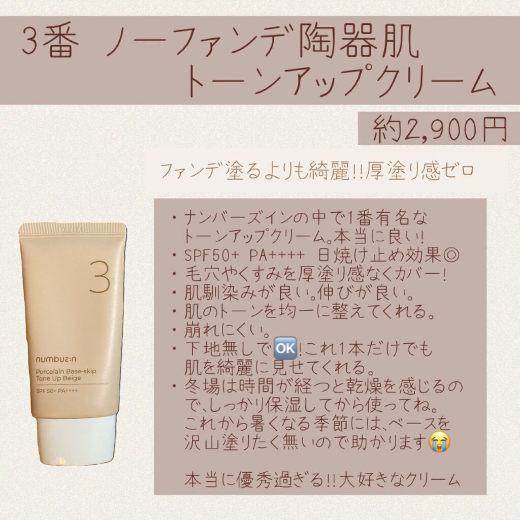 numbuzin 3番 ノーファンデ陶器肌トーンアップクリーム | 2,310円 |