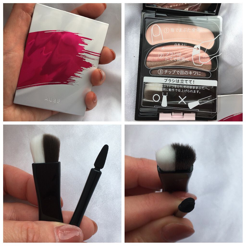 一番上はバーム状の「まぶたベース」💎 指でまぶた全体に広げます☝️ ベースを付けるだけで、この後のパウダーがピタッと密着するし、まぶたにツヤが出てワントーン明るく なります💓 その上に「3色シャドウ」をブラシで一気にまとめて取り、まぶたに往復させて広げます😌 白い毛が上になるようにブラシを立てて、パウダーを取るのがポイントです❣️ 一番下の「パウダーライナー」をチップで取り、 目のキワに入れます😉アイライナー代わりになり目元が締まります🖌 カラーは 11 ブラウン系: 王道のブラウンアイシャドウで はっきり発色します🤎 12 ピンク系: 柔らかいピンクでデイリーにも 使いやすく、お気に入りです💓 14 ブラウン系: 11のカラーよりも黄みのある ブラウンです💛 この他にもグリーン系・レッド系・オレンジ系・ そしてシースルーカラー系2色があります👩 いそがしい朝にもサッと塗るだけで自然なグラデー ションができるアイシャドウは革命的だなと思います🥺👏