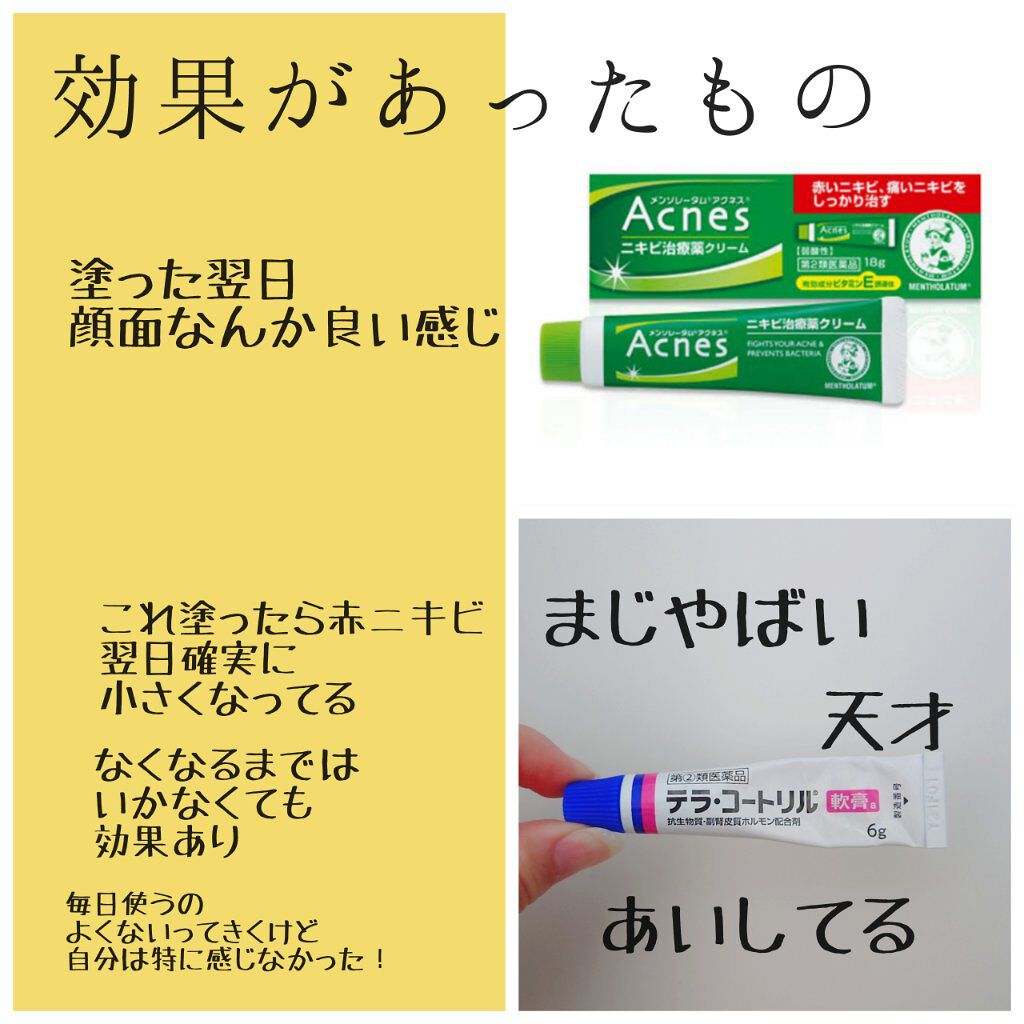 中学までは、潰しても消えるニキビだったのに、 高校生になってから赤ニキビとかの跡になる子達が 増えてしまって💧 そんなときに現れた私の救世主 テラ・コートリル あとはやっぱり夜更かしをしないことが一番だよねー ホルモンバランスの乱れでお菓子を食べすぎないことも。