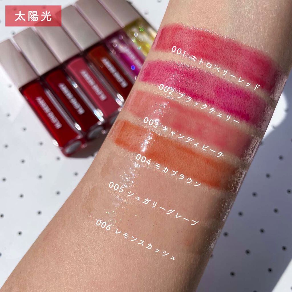 - ジューシィなしずくがシアーに発色、うるおいさらさら水感リップ。 ひと塗りでも重ね塗りでも、発色をニュアンスチェンジさせることができるリップアイテムです。べたつかずさらさらな使い心地なので日中のリップケアにも最適です。 綺麗な発色タイプ4色と、ラメ入りグリタリータイプ2色展開です。 LOFT様先行発売 : 2022/2/21 一般発売 : 2022/3/22