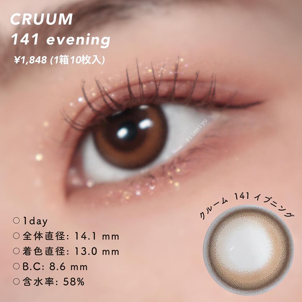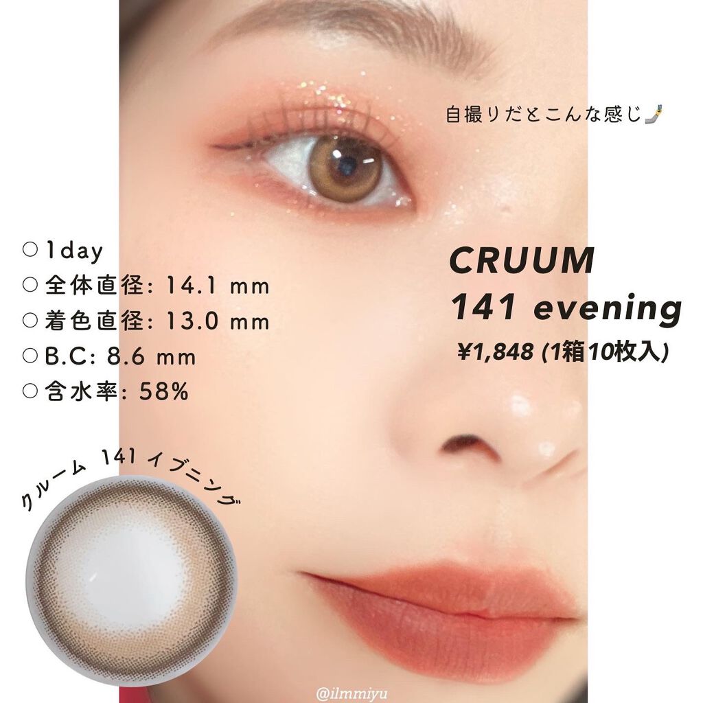 - cruum 忙しい女性にも最適な1DAY レンズケアも不要だから使用後も楽チン。 毎日取り換えるからいつも清潔に。 cruum UVカットプロテクト機能 年中降り注ぐ紫外線は肌だけでなく、 目にもダメージを与えます。 瞳に有害といわれている紫外線B波を 約95%、紫外線A波を約50%カット。 紫外線によるダメージから守ります。 cruum 含水率58%の高含水レンズ 含水率が高いと素材が柔らかくなるので、 眼に馴染みやすく付け心地が 柔らかくなります。 ※2025年10月10日〜パッケージデザインをカラーごとの個別パッケージからシリーズごとの統一パッケージへ変更。
