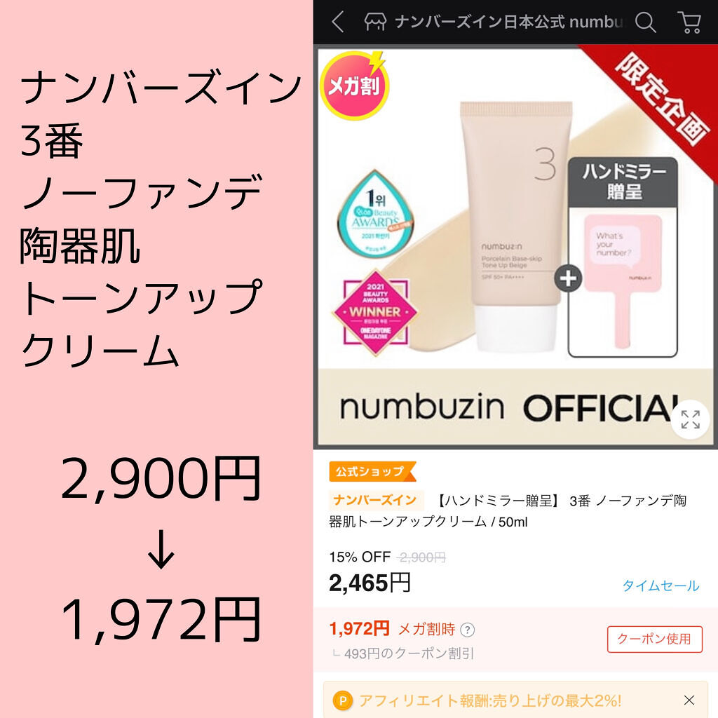 numbuzin 3番 ノーファンデ陶器肌トーンアップクリーム | 2,310円 |