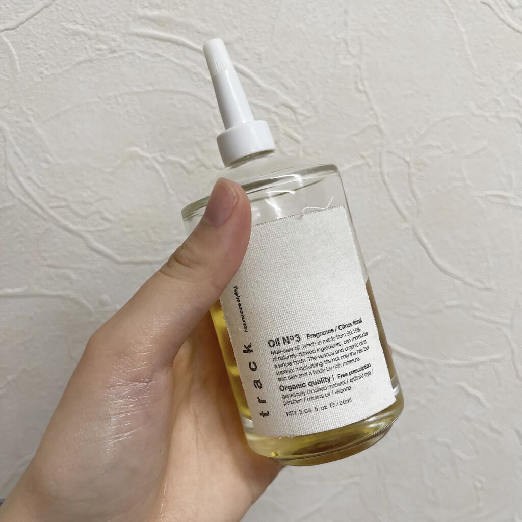 トラックオイル購入してみました!!No.3シトラスフローラルの香り使用感としては結構こっくりめのオイルだなと感じました。香りは甘すぎない爽やかな金木犀の香り(ほんといい香り🥰)乾かしたあともしっとりしつつもベタベタすぎず髪の量が多く硬めのわた...