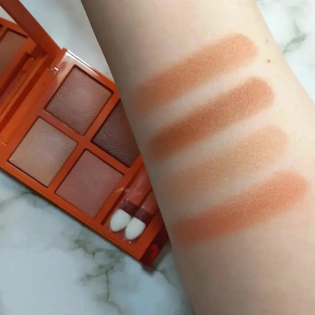 まず見た目がめちゃくちゃ可愛い💓💓💓 少し硬めの粉質ですが、密着度は高く粉飛びなし‼ 繊細なラメなのでギランギランにはならず、上品なキラッキラなツヤ感がとにかく綺麗❤ 華やかな仕上がりになります👍❤️ ツヤ肌好きの方には特にオススメ😘︎💕︎ もちろん捨て色もなく、ハイライト、チーク、アイシャドウとしても使える万能なパレット👏👏👏❤ 見たままの淡い発色で、濃く付けすぎる心配もなく、失敗なし‼ アイシャドウとしてはナチュラルな感じで、グラデーションは作りやすいかな🤔 涙袋に使うと可愛いよね🤤🧡 ロゴの型押しも可愛いので、使うのが勿体ない😭