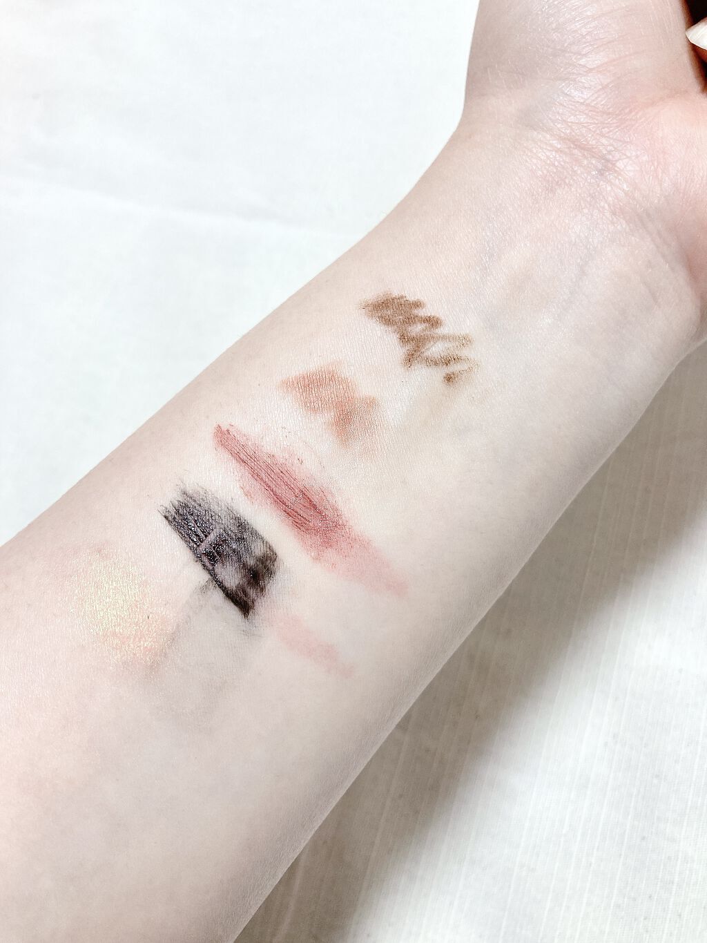 セザンヌ パールグロウハイライト SP1オーロラプリズム 4色のハイライトで多色パール入り ややパールは大きめだけどめっちゃ可愛かった✨ 4色ぐるっと混ぜたら白みピンクみたいになったよ! PLAZAとミニプラで先行発売中だから 持ち歩き用にするんだ🤭