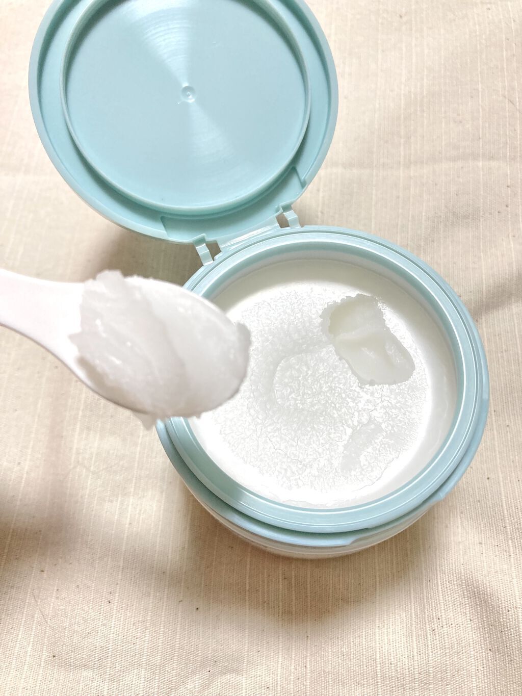 ダブのクレンジングバームを使ってみた!大きさは一般的なクレンジングバームのサイズで、青緑と白のパッケージが爽やかさがあります🌿白いバームで溶けるくらい柔らかいテクスチャーです!香りはありません!メイクと馴染ませやすく、カールキープのマスカラも...
