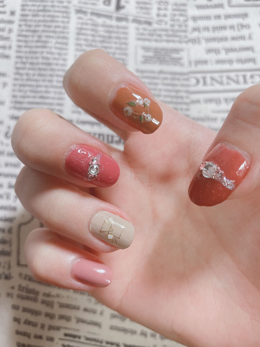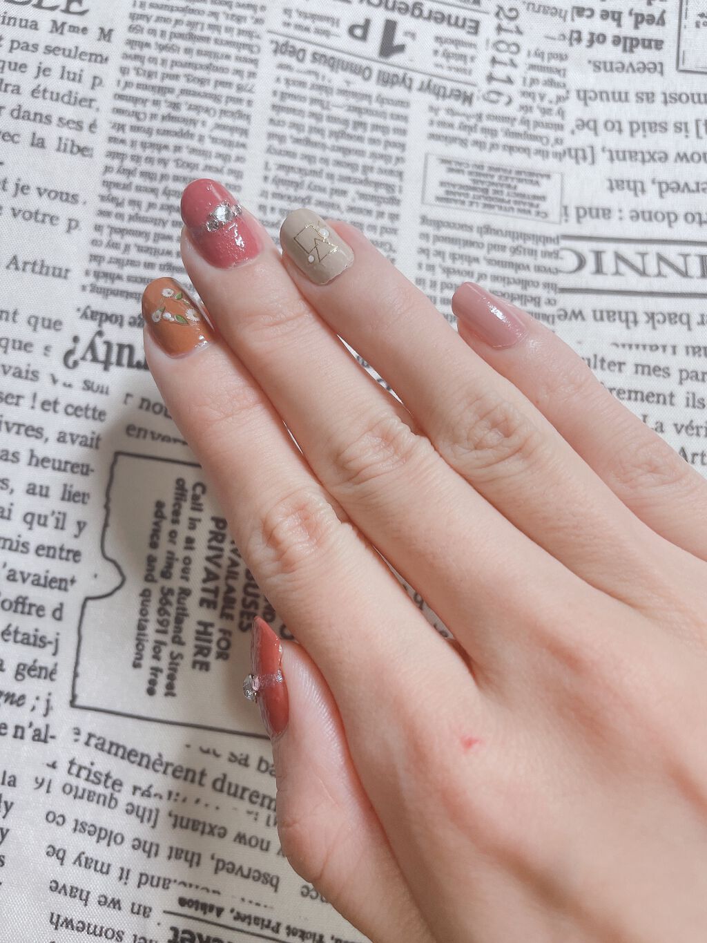 指の腹を火傷したので、凝ったもの出来なかった時期で、色身を春っぽくしつつ可愛いけど、シンプルを目標にやってみました。2色組み合わせて適当に1つくらいシールでやめたけど、ネイルシール色々使う方が春っぽくなるからよいかな?とか思いました。今回は塗...