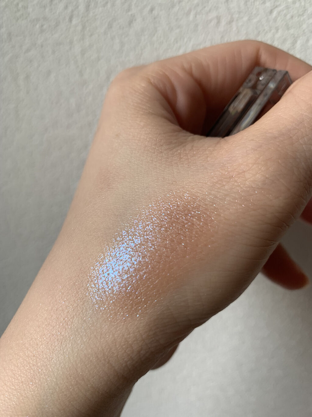 パッと見るとかなり青みの強いピンクに見えますが肌にのせるとフワッと馴染んでくれてとってもかわいいピンクチークです🩷ᩚ୨୧⑅* 透け感のあるベージュベースに青ラメがぎっしり!角度によって青ラメがキラキラと輝いてくれます✧*。 チークにアイシャドウをのせてもすごく可愛くなります!