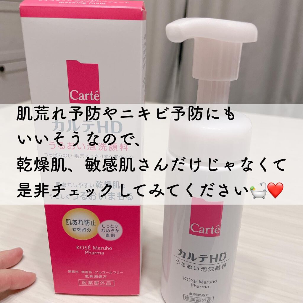 この泡洗顔は、泡立て不要で泡のままでてくる洗顔料🙌 ズボラな私にはピッタリね🤤 泡はキメが細やかなので、毛穴の奥の汚れまですっきり😳 なのに、さすがのカルテHDって感じで潤いを守りながら洗えてつっぱらなくてしっかり保湿されるぅ✨ 保湿力は本当に言うことなしなんだけど、肌荒れ予防やニキビ予防にも良いらしいので肌荒れやニキビで悩んでいる人も是非試してみて〜☺️💛