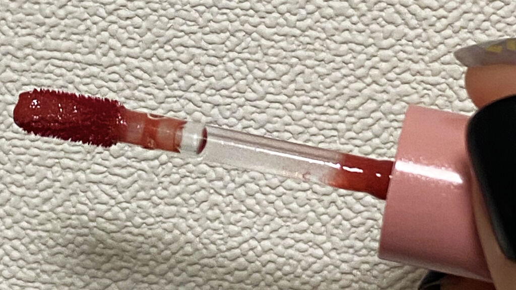 🙆♀️密着力、発色◎ 唇にはもちろんですが、オーバー気味に塗る場合は どうしても肌にも塗らないといけませんが、オーバ ー気味に肌に塗ってもしっかり密着で発色してくれ ました。 🙆♀️サラサラのテクスチャー リップのベタベタ感が苦手な方におすすめ! サラサラだからと言って乾燥感はないです。 🙆♀️持続力◎ マスクにもつきにくく、飲み物を飲んでもすぐに色 落ちすることがなかったです。 🙆♀️チップが大きいから均一に塗れる