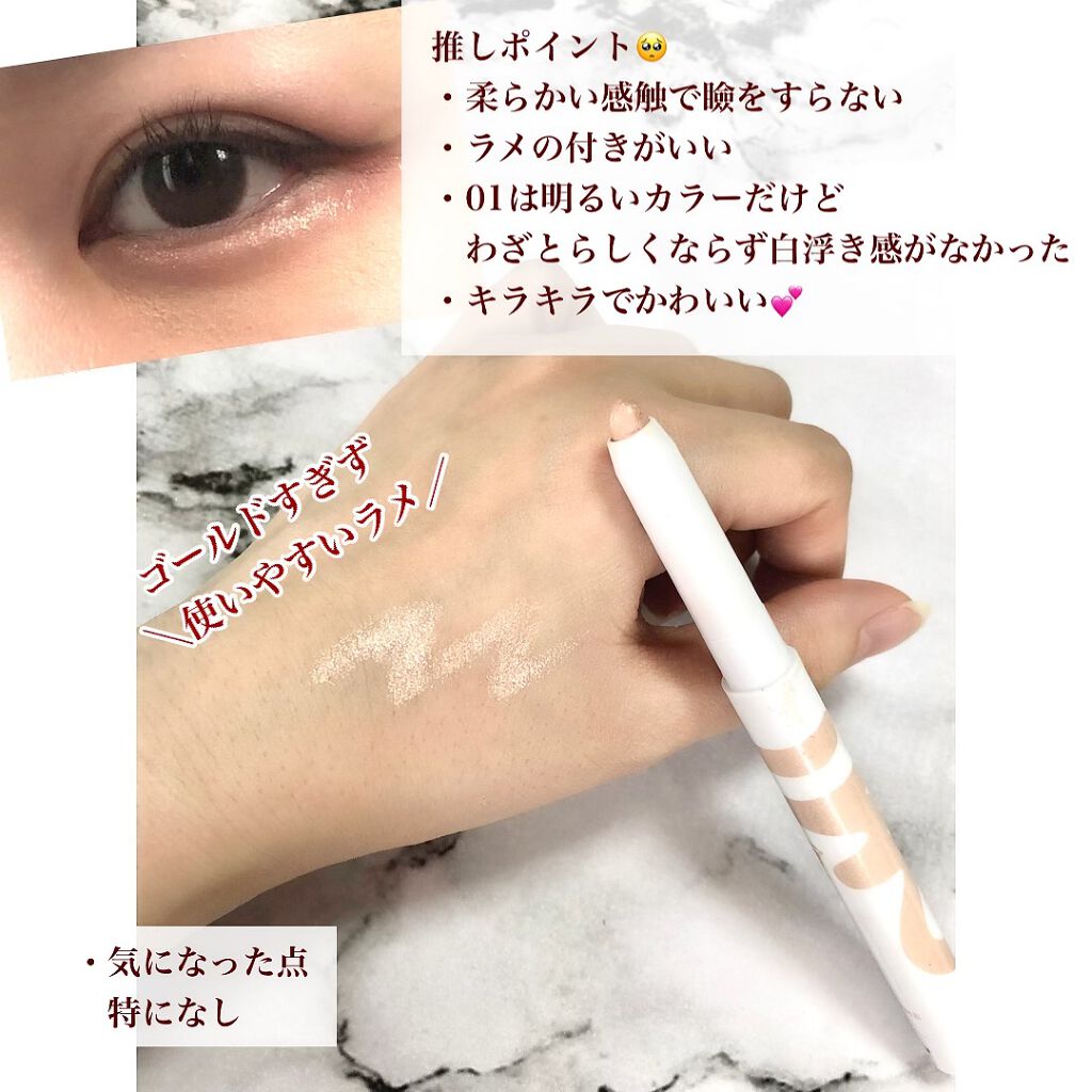するするなめらかな描き心地のアイシャドウペンシル!繊細なツヤ感と可愛い立体感が素敵で、涙袋メイクにぴったり🥹 強い密着力でこすれにも強く、ラメ飛びなどもしにくいので一日中うるうる目元メイクがキープされます。 どちらもパールの密度がかなり高くて本当に綺麗…プチプラでここまでのクオリティのコスメは本当にありがたいですね💕︎