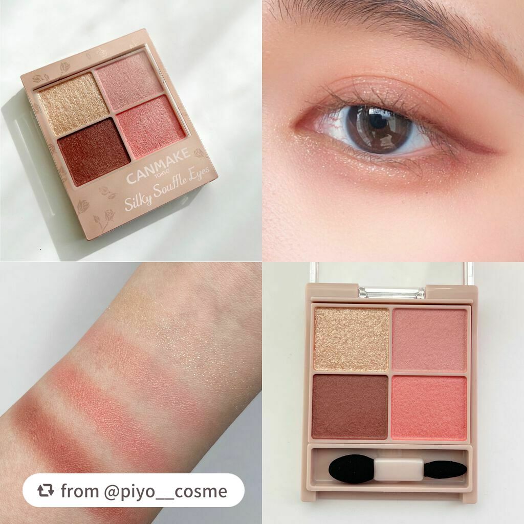 - シルキースフレアイズの姉妹品♡ 肌に溶け込むような透けマットシャドウ 透け感のある柔らかい仕上がりになるマット3色と、透け発色の繊細ラメ1色のパレットシャドウ♡ 完全マットアイや、ラメ×マットアイなど、メイクのパターンを楽しみましょう!