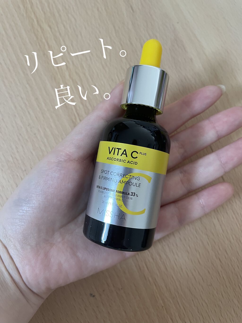MISSHAビタシープラス美容液違うメーカーの商品か迷ってこちらを購入刺激の少ない日本処方の方を購入私は朝のスキンケアに使用していますとろ〜っとしているなかなか色みの強い黄色にちょっと驚いた柑橘っぽい匂い私はピリピリはしなかったので生理中とか...