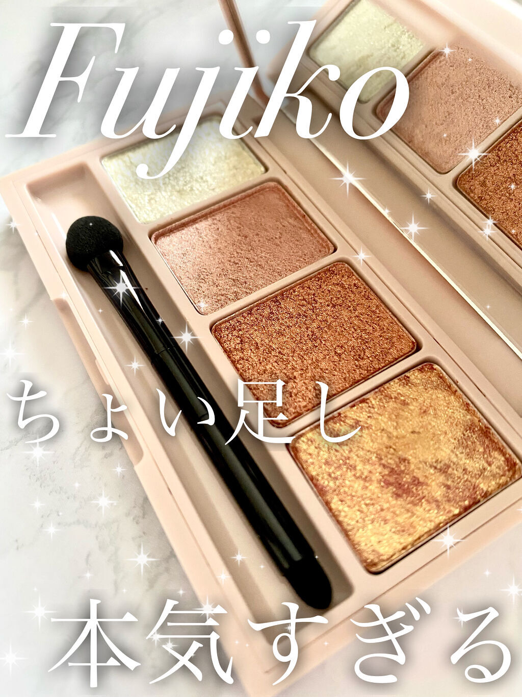本日のアイシャドウ♡ #Fujiko #足しパレ 02彫り深モーヴを、メインに使用して仕上げました。この彫り深モーヴだけだと、マットに仕上がります。 が、ラメ好きな私は03うるみラメの、左隅のホワイトラメをまぶたに足しました✨✨✨ 涙袋には、うるみラメの左から2番目と、1番右側のラメを使用♫ うるみラメ、かなり万能に使えています。