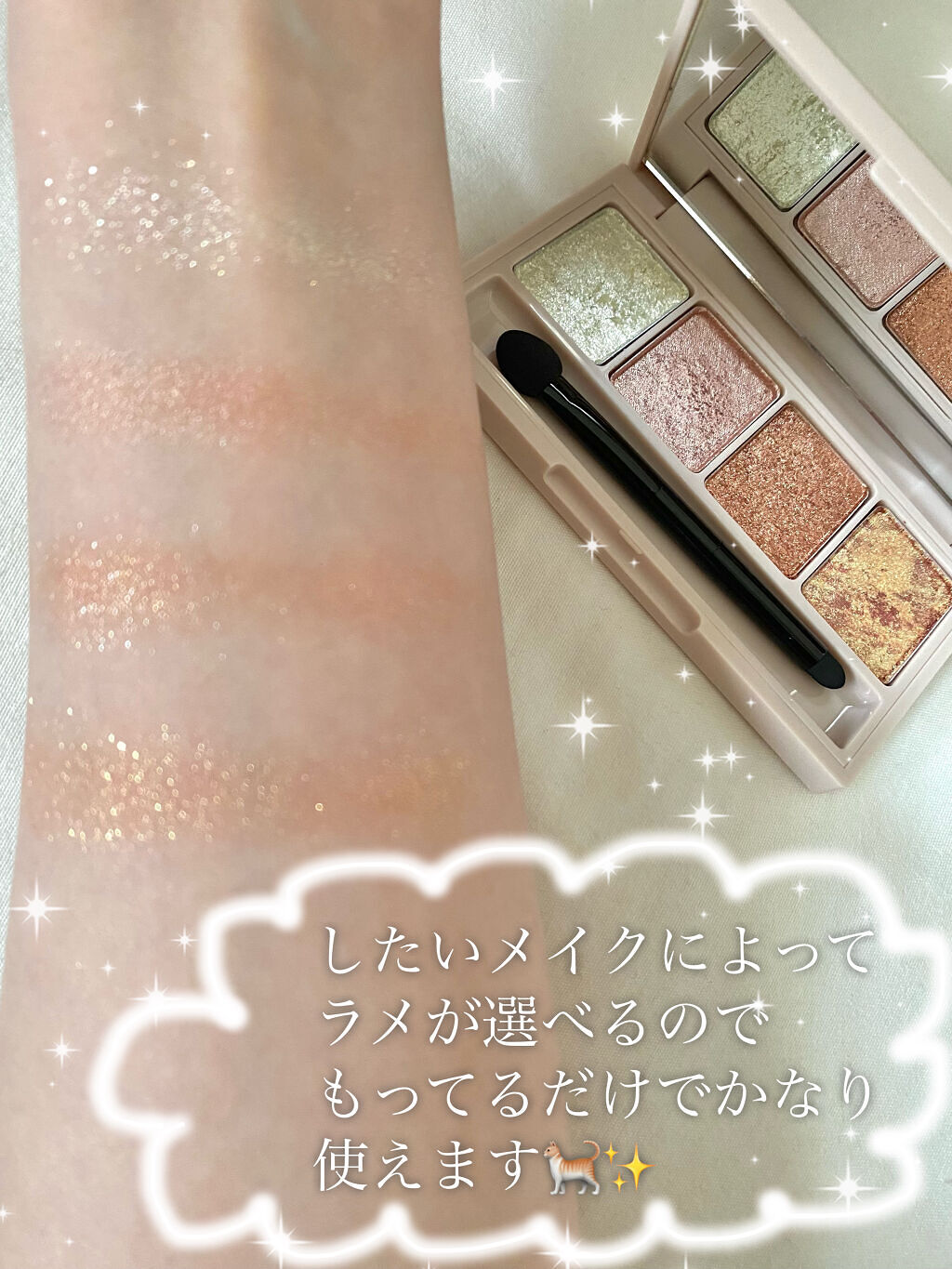 | アイシャドウパレットランキング第10位 | 光にあたるとキラッと輝くのにギラつき感はなくて、程よいツヤのようにも見える絶妙さがたまらない🥰 | 詳細を見る |