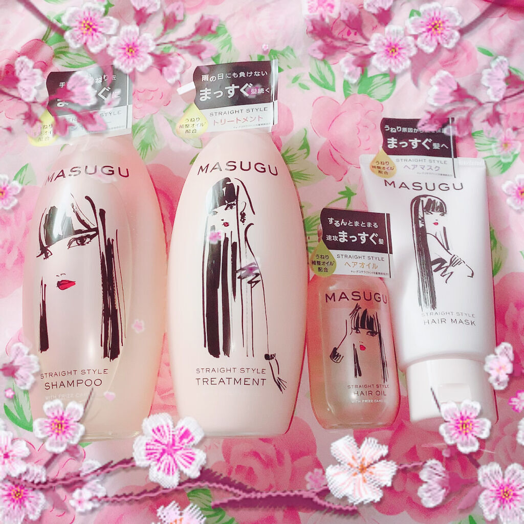 MASUGU様のくせ毛やうねり髪に悩んでいる人に向けたシャンプー、トリートメント、ヘアマスク、ヘアオイル使用してみました😊香りが甘め✨泡立ちも良く乾かした後もくせ毛なのですがまとまりが良かったです✨ヘアオイルは重めのテクスチャー。ヘアセットで...