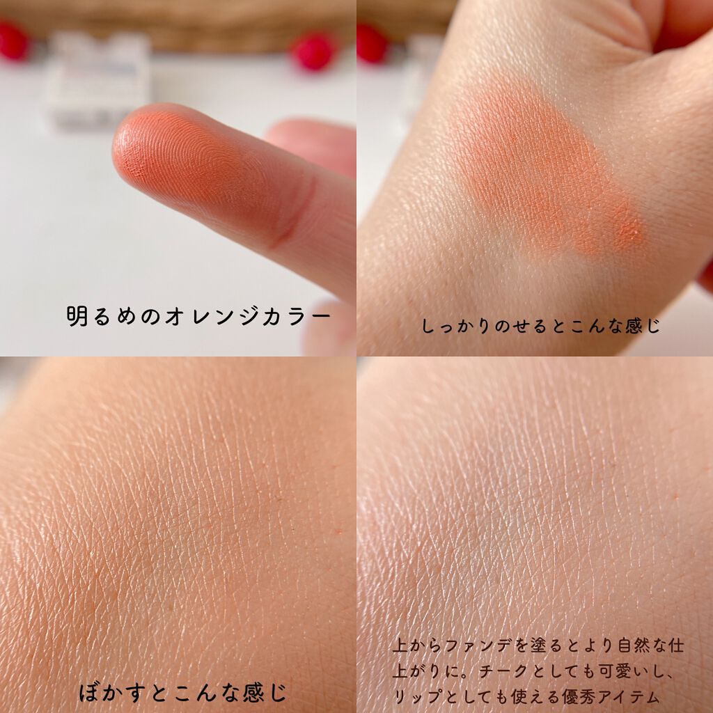 まず見た目が可愛くって、そして思ってたよりもかなりのミニサイズ・・⭕️ シアータイプのリップでラメがチラチラ見える控えめの発色のリップだょ✨✨ ティッシュオフしてもほんのり色が残ってくれて、ラメ感とツヤもほんのり残るのね・・✨✨ 程よい血色感が続いてくれて、つけ心地としては圧迫感が全くなくって、艶々瑞々しい感じ🥰 潤いもチャージできて、乾燥知らずなのもいい⭕️