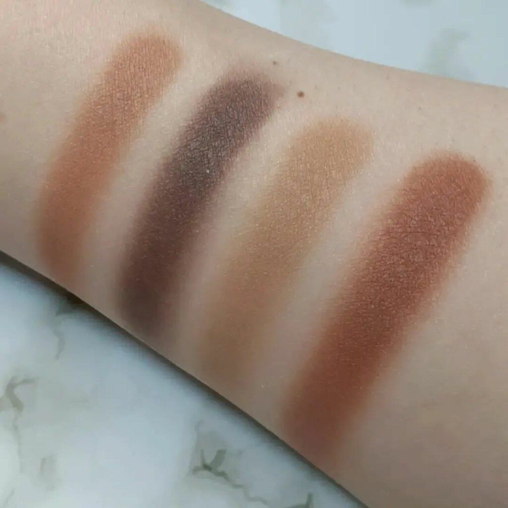 そして今までにない新しい質感❗ 粉なんだけど硬めのクリームのような感じ😳 繊細なシルバーラメが煌めくマット4色のパレットで、ナチュラルな発色🧡 硬めのクリームみたいな質感が、しっとりとしていて肌にピタッと密着👍❤️ 粉飛びもしないです‼ 肌馴染みが良いカラーなので、普段使いもしやすいかな🙋♀️