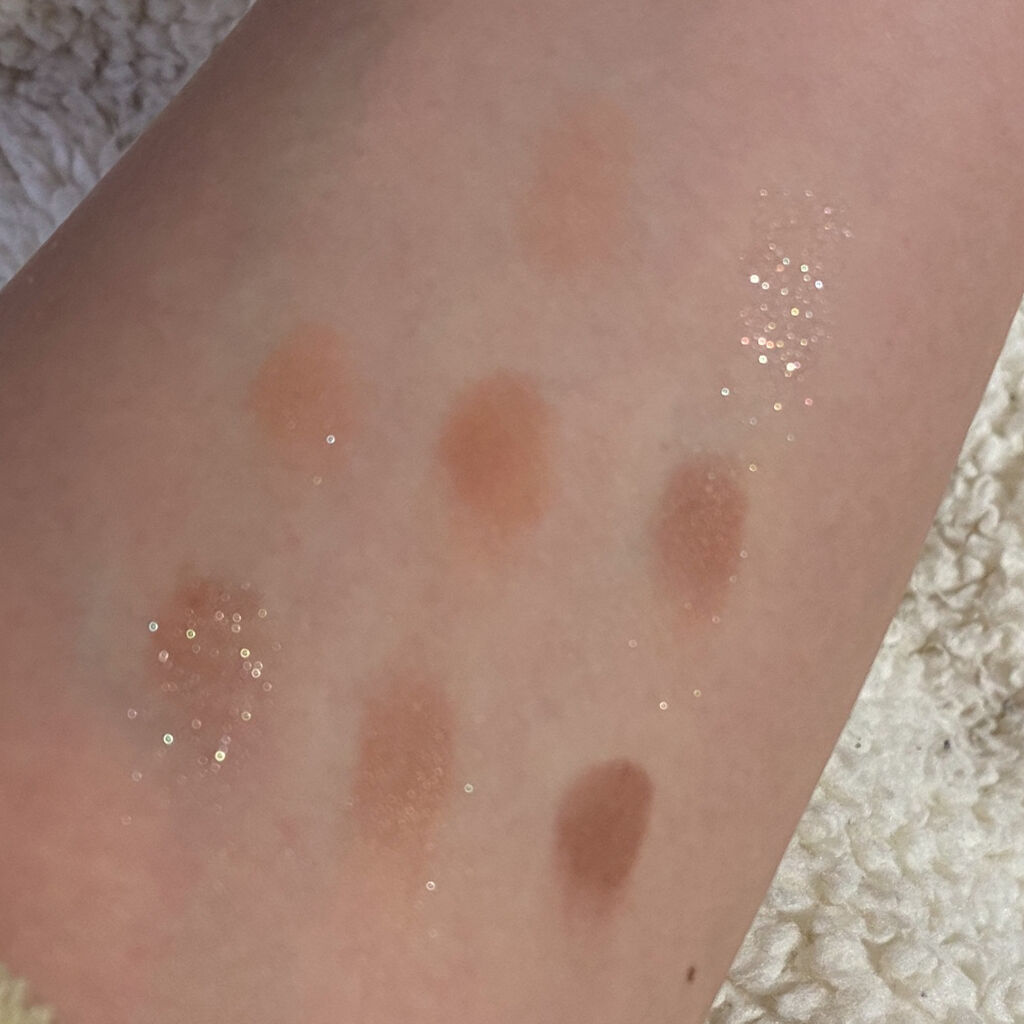 プロアイパレットで買わないわけには!と思い 購入しました𓍯1段目左から2番目の黄色っぽいカラーもこれからの季節よさそう! 1段目右から2番目のラメを使用してみましたが ピンクがチラチラしていてとってもかわいい💕 ラメをのせると一気に目元が華やかになりますよね〜 (7,8枚目のブラシは他の色についていたものですが、色違いの同じものがこちらにも入っています)