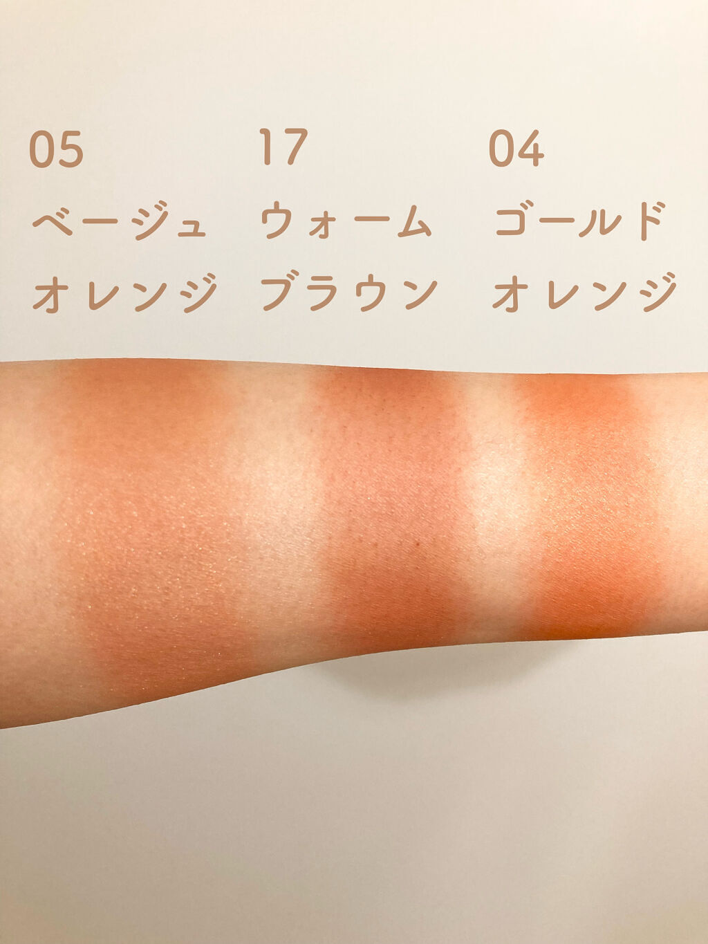 - <01 ピーチピンク> タルク、ジメチコン、メチルパラベン、プロピルパラベン、トコフェロール、(+/-)マイカ、硫酸Ba、メチコン、酸化チタン、酸化鉄、グンジョウ、赤226、赤202 <05 ベージュオレンジ> タルク、ジメチコン、ジフェニルジメチコン、トコフェロール、メチルパラベン、ブチルパラベン、マイカ、酸化チタン、ホウケイ酸(Ca/Al)、酸化鉄、シリカ、水酸化Al、赤226、メチコン、酸化スズ、硫酸Ba <10 オレンジピンク> タルク、ジメチコン、メチルパラベン、プロピルパラベン、トコフェロール、(+/-)マイカ、酸化チタン、酸化鉄、赤226、メチコン、グンジョウ、硫酸Ba、赤202 <18 ローズベージュ> タルク、エチルヘキサン酸セチル、ヘキサ(ヒドロキシステアリン酸/ステアリン酸/ロジン酸)ジペンタエリスリチル、リンゴ酸ジイソステアリル、メタクリル酸メチルクロスポリマー、トリメチルシロキシケイ酸、ヒドロキシアパタイト、メチルパラベン、プロピルパラベン、トコフェロール、(+/-)ジメチコン、ハイドロゲンジメチコン、トリエトキシカプリリルシラン、マイカ、シリカ、アルミナ、硫酸Ba、グンジョウ、赤226、酸化チタン、酸化亜鉛、酸化鉄 <04 ゴールドオレンジ> タルク、ジメチコン、ジフェニルジメチコン、トコフェロール、メチルパラベン、ブチルパラベン、マイカ、酸化鉄、酸化チタン、ホウケイ酸(Ca/Al)、赤226、シリカ、メチコン、水酸化Al、硫酸Ba、酸化スズ <13 ローズピンク> タルク、ジメチコン、ジフェニルジメチコン、トコフェロール、メチルパラベン、ブチルパラベン、マイカ、酸化チタン、ホウケイ酸(Ca/Al)、シリカ、酸化鉄、赤226、グンジョウ、水酸化Al、硫酸Ba、メチコン、酸化スズ <14 ラベンダーピンク> タルク、ジメチコン、ジフェニルジメチコン、トコフェロール、メチルパラベン、ブチルパラベン、マイカ、酸化チタン、グンジョウ、赤202、水酸化Al、酸化鉄、メチコン、硫酸Ba <17 ウォームブラウン> タルク、エチルヘキサン酸セチル、ヘキサ(ヒドロキシステアリン酸/ステアリン酸/ロジン酸)ジペンタエリスリチル、リンゴ酸ジイソステアリル、メタクリル酸メチルクロスポリマー、トリメチルシロキシケイ酸、ヒドロキシアパタイト、メチルパラベン、プロピルパラベン、トコフェロール、(+/-)ジメチコン、ハイドロゲンジメチコン、トリエトキシカプリリルシラン、マイカ、シリカ、アルミナ、硫酸Ba、グンジョウ、赤226、酸化チタン、酸化亜鉛、酸化鉄 <19 ペールベージュ> タルク、エチルヘキサン酸セチル、ヘキサ(ヒドロキシステアリン酸/ステアリン酸/ロジン酸)ジペンタエリスリチル、リンゴ酸ジイソステアリル、メタクリル酸メチルクロスポリマー、トリメチルシロキシケイ酸、ヒドロキシアパタイト、メチルパラベン、プロピルパラベン、トコフェロール、(+/-)ジメチコン、ハイドロゲンジメチコン、トリエトキシカプリリルシラン、マイカ、シリカ、アルミナ、硫酸Ba、グンジョウ、赤226、酸化チタン、酸化亜鉛、酸化スズ、酸化鉄 <20 ジンジャー> タルク、エチルヘキサン酸セチル、ヘキサ(ヒドロキシステアリン酸/ステアリン酸/ロジン酸)ジペンタエリスリチル、リンゴ酸ジイソステアリル、メタクリル酸メチルクロスポリマー、トリメチルシロキシケイ酸、ヒドロキシアパタイト、メチルパラベン、プロピルパラベン、トコフェロール、(+/-)ジメチコン、ハイドロゲンジメチコン、トリエトキシカプリリルシラン、マイカ、シリカ、アルミナ、硫酸Ba、グンジョウ、赤226、酸化チタン、酸化亜鉛、酸化スズ、酸化鉄