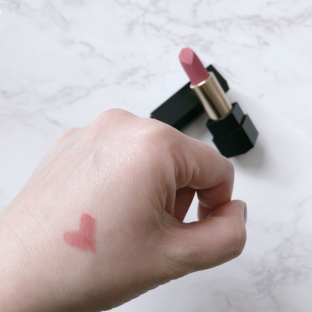 久しぶりに手に出してみると、やはりしっかりとした発色。 透け感はなく、マットな仕上がり。質感は柔らかくふわっとしたテクスチャー。 SUQQUってマットカラーの色味が絶妙ですよね😳 素敵な色が多く、惹かれる色味。 色持ちはいい◎ メイク落としシートで拭いても落ちない。