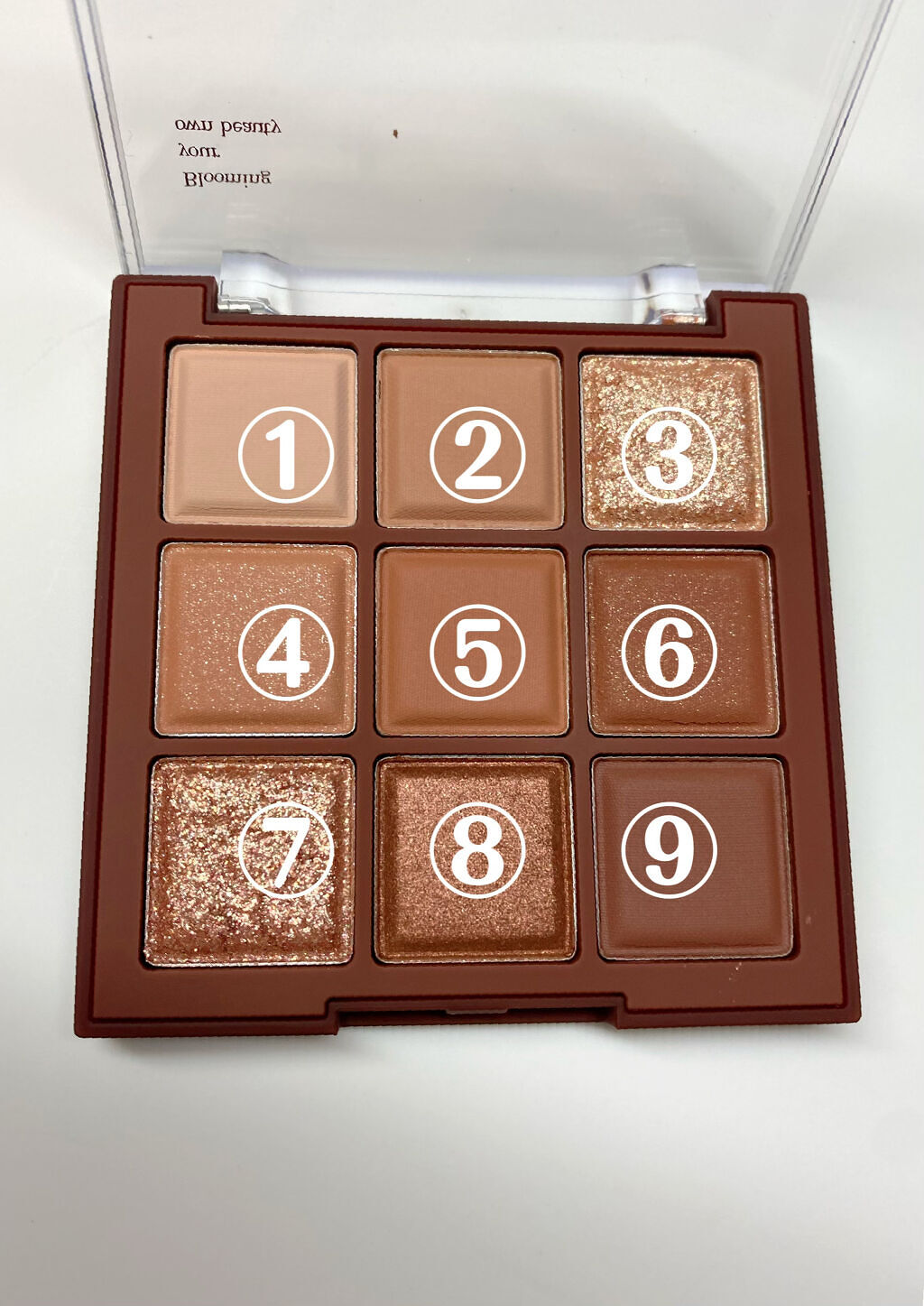 奥ゆかしいチョコレートブラウンムードを詰め込んだアイシャドウパレット🧸 色味はもちろん、アイシャドウが立体的になっていて、本物のチョコレートみたいな、見た目からして可愛い❣️ マットからラメ、グリッターまでバリエーション豊富な9色で、思いのままにアイメイクができる万能パレット🐰