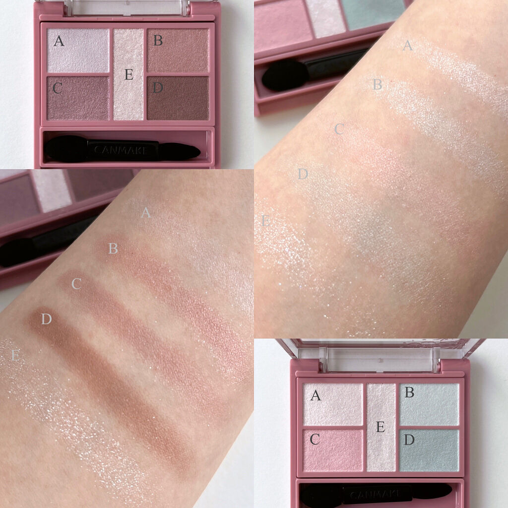 - 1枚のパレットで2つのスタイルが完成! 5色の欲ばりアイシャドウ♥ メインカラーを選んで2つのスタイルが楽しめる! A→B→D でスタイル1 A→C→D でスタイル2 繊細な粉質が、しっとりとまぶたに密着して色落ちを防ぎます。 透明感のあるキラうるトッピングジュエル(繊細ラメ)は、気分によってトッピング!