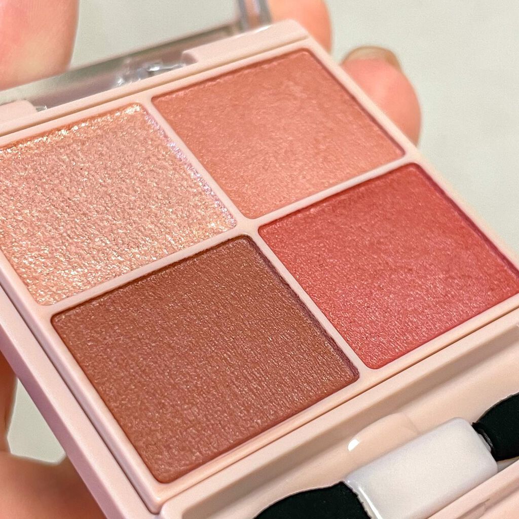 ピンクのアイシャドウが浮きがちな私の目にもしっかり馴染んでくれました🥹 おしゃれなピンクテラコッタです🎀 マットタイプだけど左上にはしっかりラメが✨️ マットだけを使えばナチュラルに仕上がるしラメをのせれば華やかになるし、、 チップ付きなのでもうこれさえ持っていればどこでもアイメイク出来ちゃいます!!