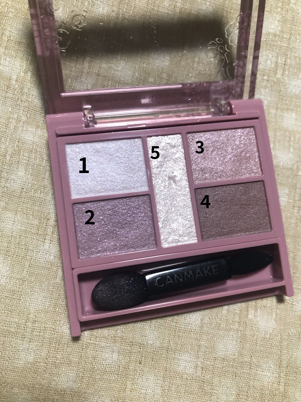 - 1枚のパレットで2つのスタイルが完成! 5色の欲ばりアイシャドウ♥ メインカラーを選んで2つのスタイルが楽しめる! A→B→D でスタイル1 A→C→D でスタイル2 繊細な粉質が、しっとりとまぶたに密着して色落ちを防ぎます。 透明感のあるキラうるトッピングジュエル(繊細ラメ)は、気分によってトッピング!