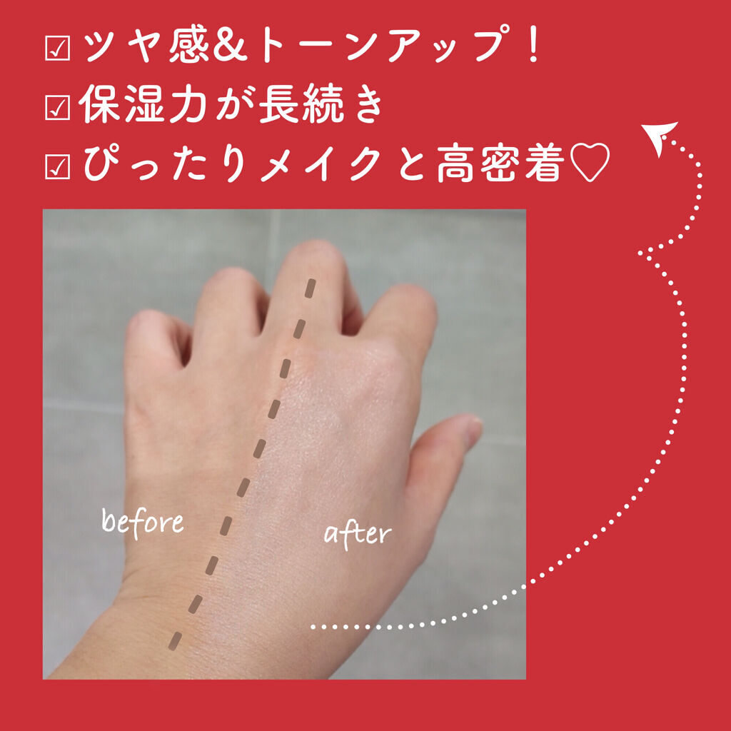 | 肌に馴染ませるとトーンアップ✨ベタつきが少ないのでお粉ものせやすい かなり肌に密着する感じがありますが クレンジングミルクで難なく落とせました | 詳細を見る |