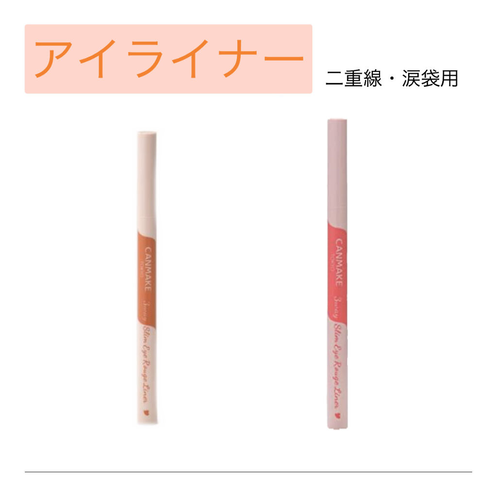 CANMAKE新作 チーク&リップ&アイライナー左)メルティールミナスルージュ(ティントタイプ)T07 ジンジャーオレンジ 880円中)クリームチーク 22みかんシャーベット 638円右)3wayスリムアイルージュライナー 02シアーオレンジ...