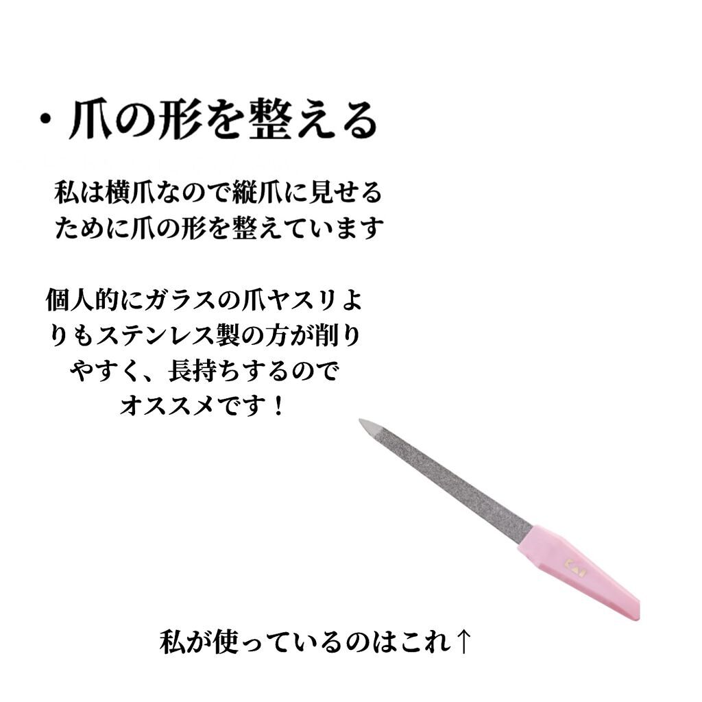 乾燥してボロボロだし、爪の形が丸いですよね😭 保湿をすること これが一番大事です! とにかく気がついたらネイルオイルを塗る! 甘皮処理をすること 私みたいな横爪に悩んでいる人はこれをしてください! だいぶ改善されました! 爪の形を整える 私は爪の形が丸かったり斜めに生えていたり、 形が嫌だったので爪ヤスリで整えています!