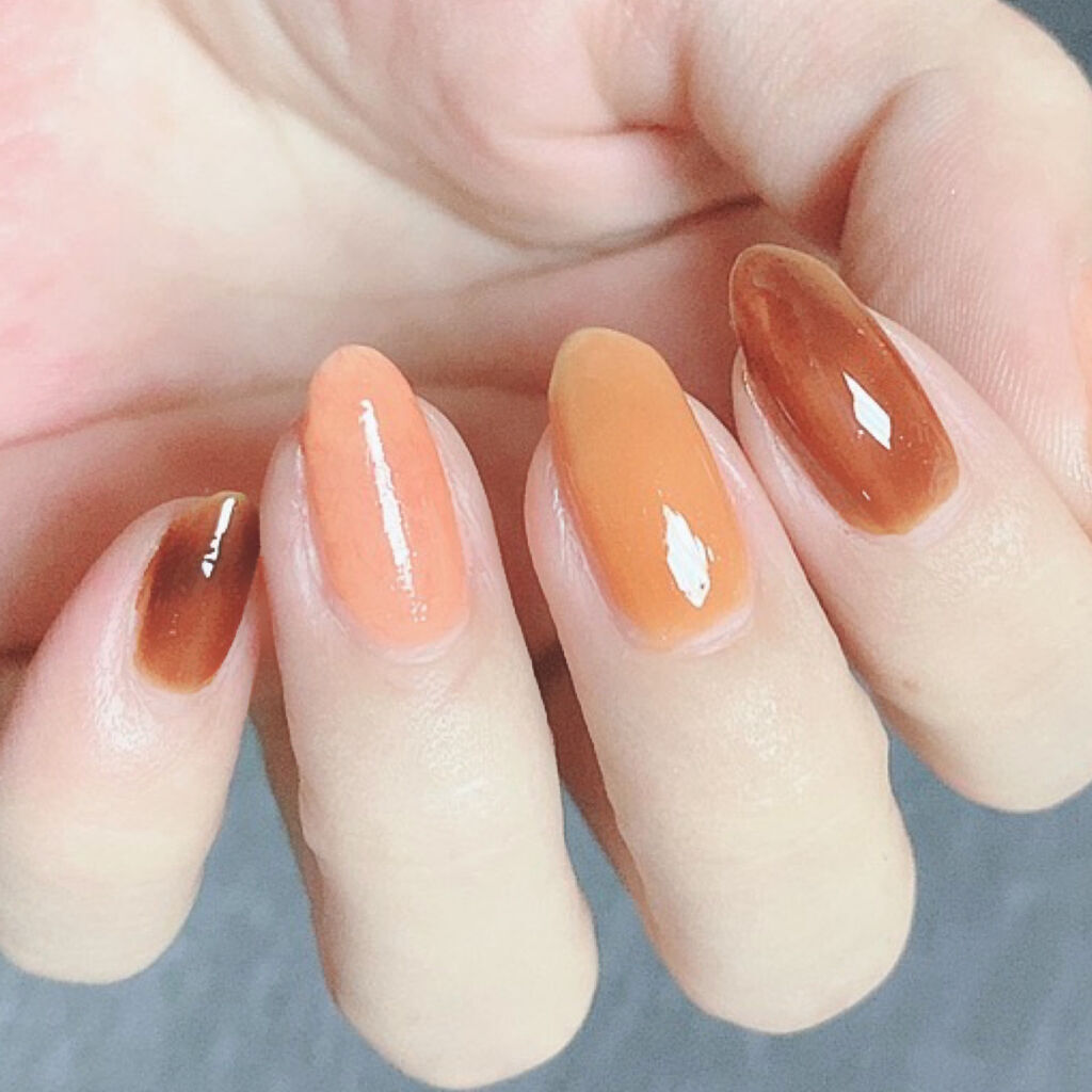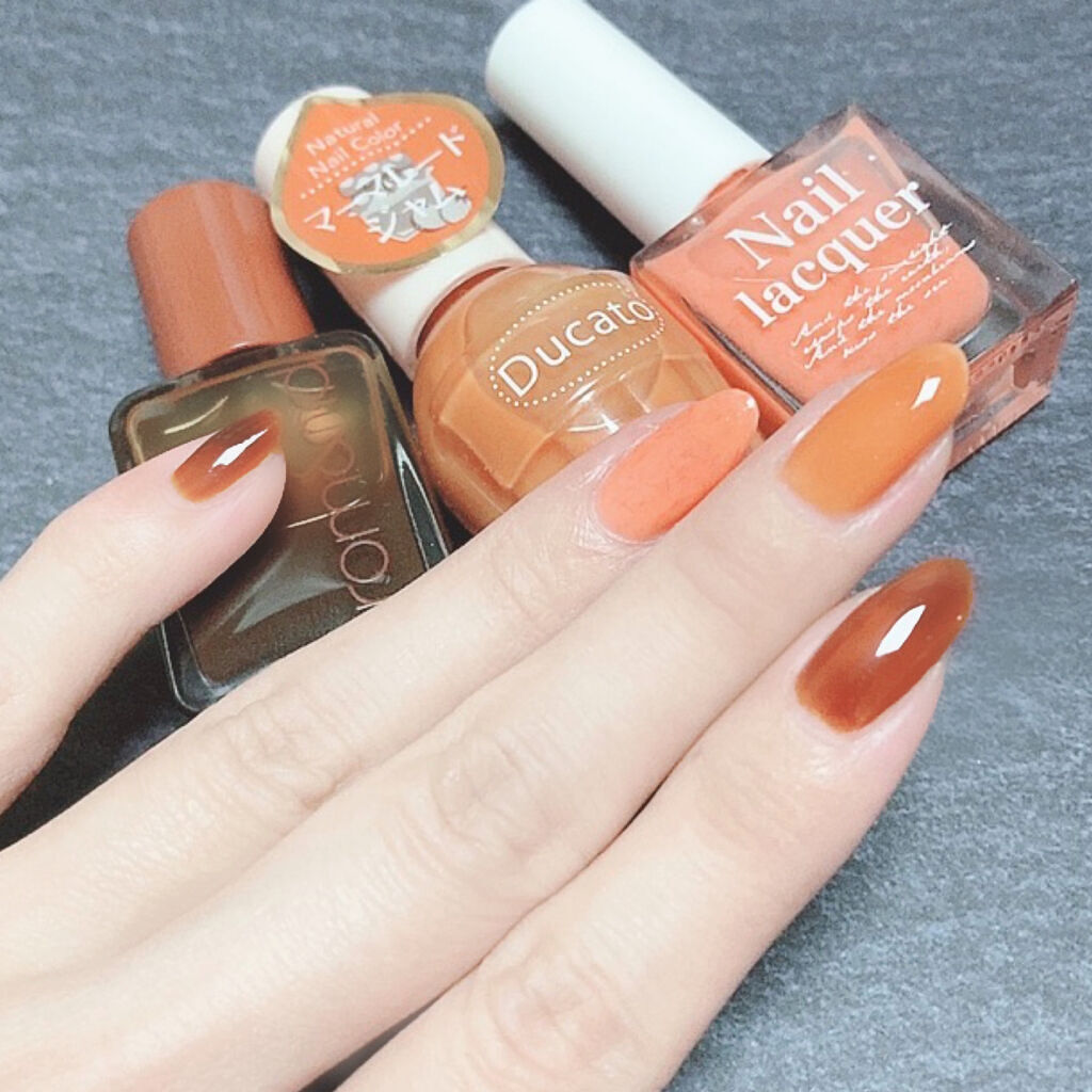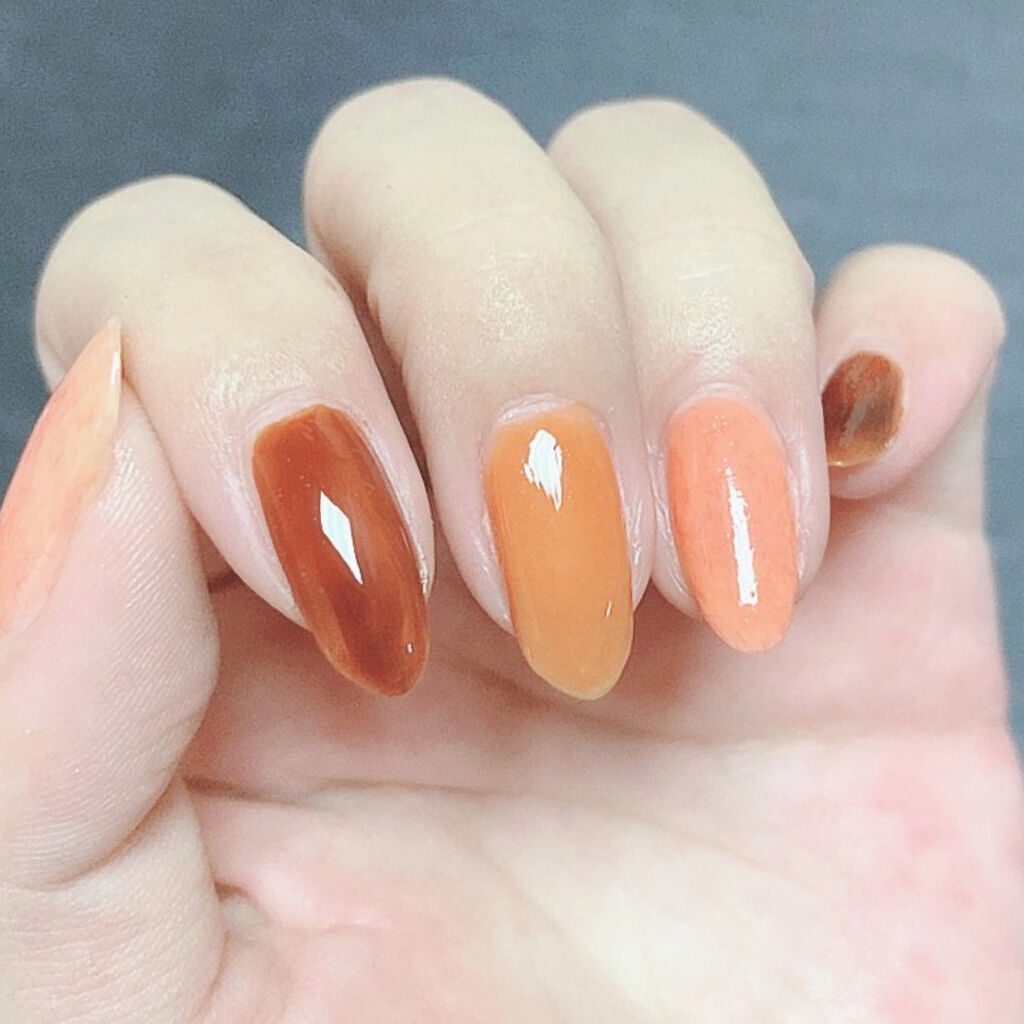 オレンジの誘惑に負けた🧡😍可愛すぎる!!ちふれのオレンジラメ🧡ちふれネイルエナメル017カラフルラメ可愛い、、マジで可愛すぎて夢中で塗ってたら、グラデーションしか出来なかった(笑)オレンジの微細なラメに、大きめゴールドのホロ⭐️塗るとシアーな...