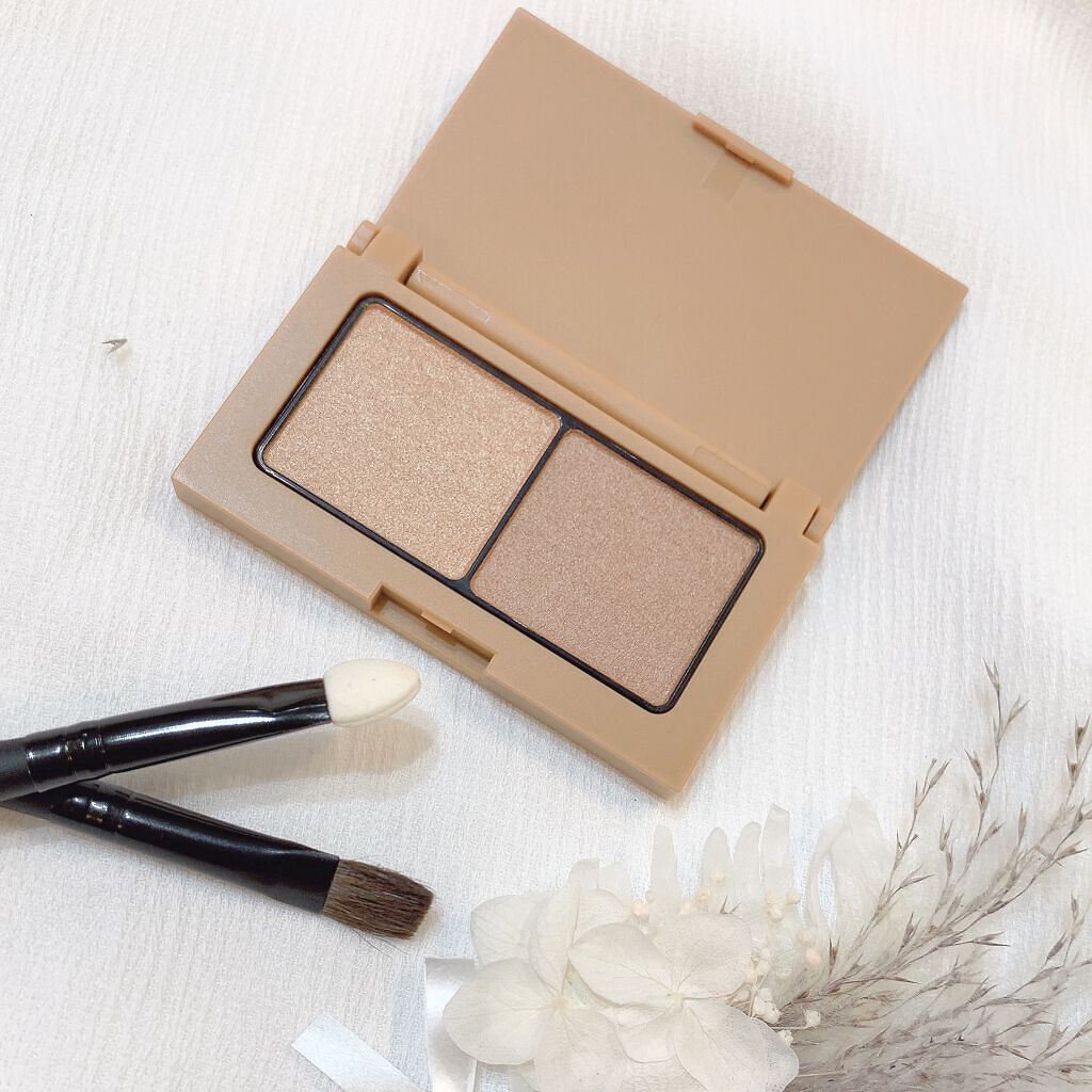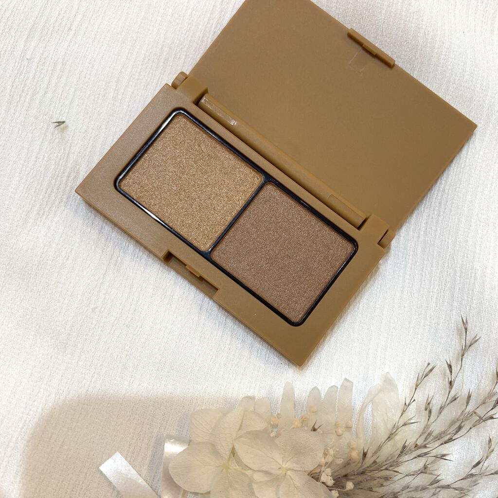 一口にベージュと言っても黄みが強すぎたり、くすみが強すぎて重たい印象になったりしますが、こちらのお色はくすまないマットなベージュで、ラメカラーにはほんのりピンクが入っていて、イエベさんにもブルベさんにも馴染みやすいニュートラルなベージュだと思います。 2色でちゃんとメイクが仕上がるので失敗もしにくいし時短メイクにも◎ アイシャドウでいつも捨て色が出てしまう方や、今っぽいべージュメイクを簡単にしたい方にもオススメのお色だと思います。