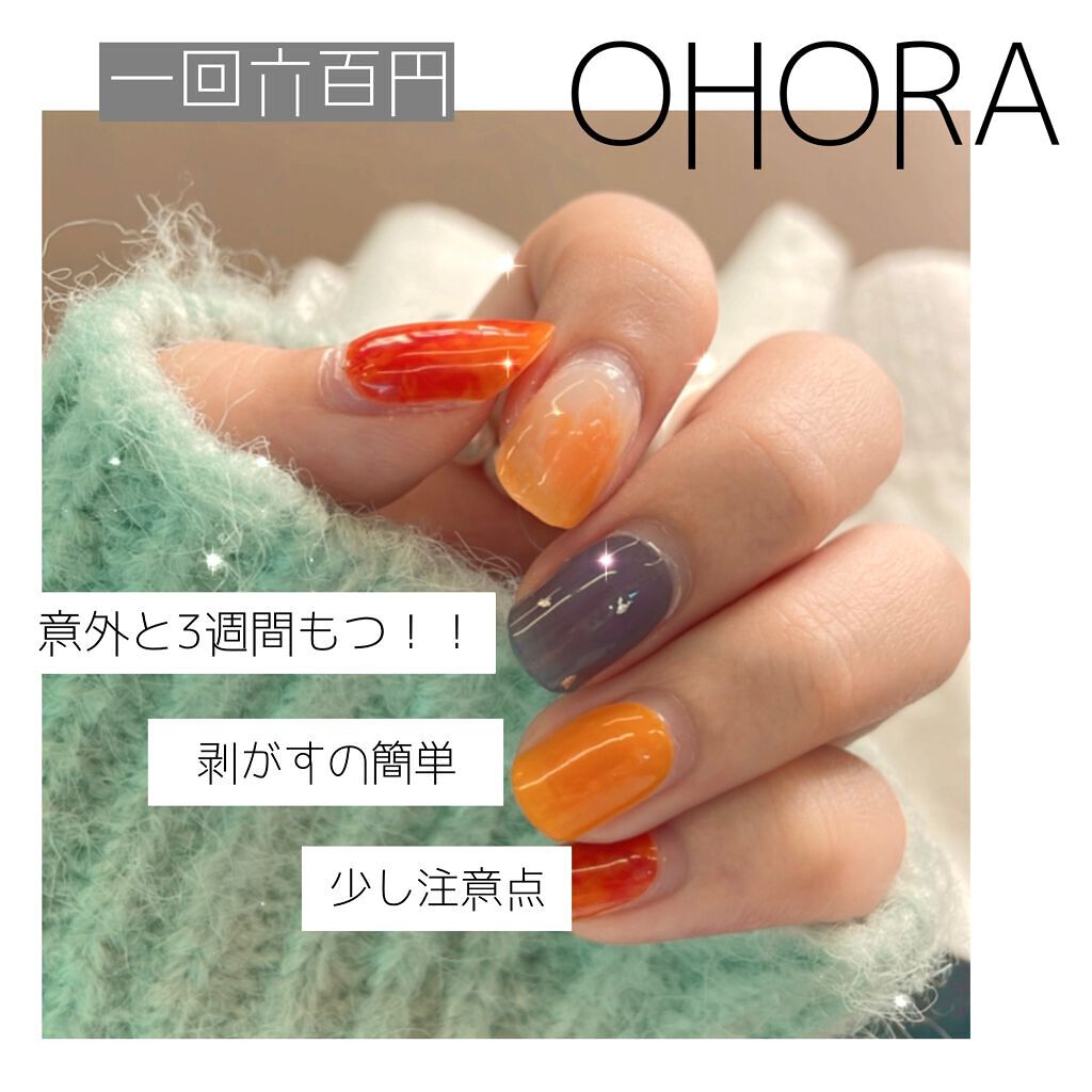 韓国発のセルフジェルネイルブランド『ohora』ジェルネイルとネイルシールのいいとこ取り!固めるタイプのシールです😊私も過去にフットを経験してますが、デザイン豊富、オンオフ簡単、シールだけどシールに見えないのが、オホーラの魅力ですね♥今回デザ...