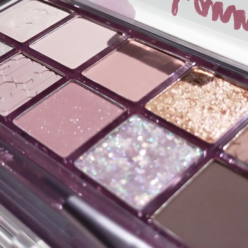 外箱を開けてすぐラベンダーのいい香りがして見た目も香りも癒やされるアイパレット💜 9色のうちラメが入っているのは2色のみ 全体的にミュートで陰影メイクに向いているカラーが多い印象です! 全部の色が写真で見るよりも実物のほうが何倍も可愛いです😢 粉質はマットですがしっとりとしていて塗りやすかったです! ミュートで落ち着いているので、これからの秋・冬に重宝したいアイシャドウパレットになりました🍁❄