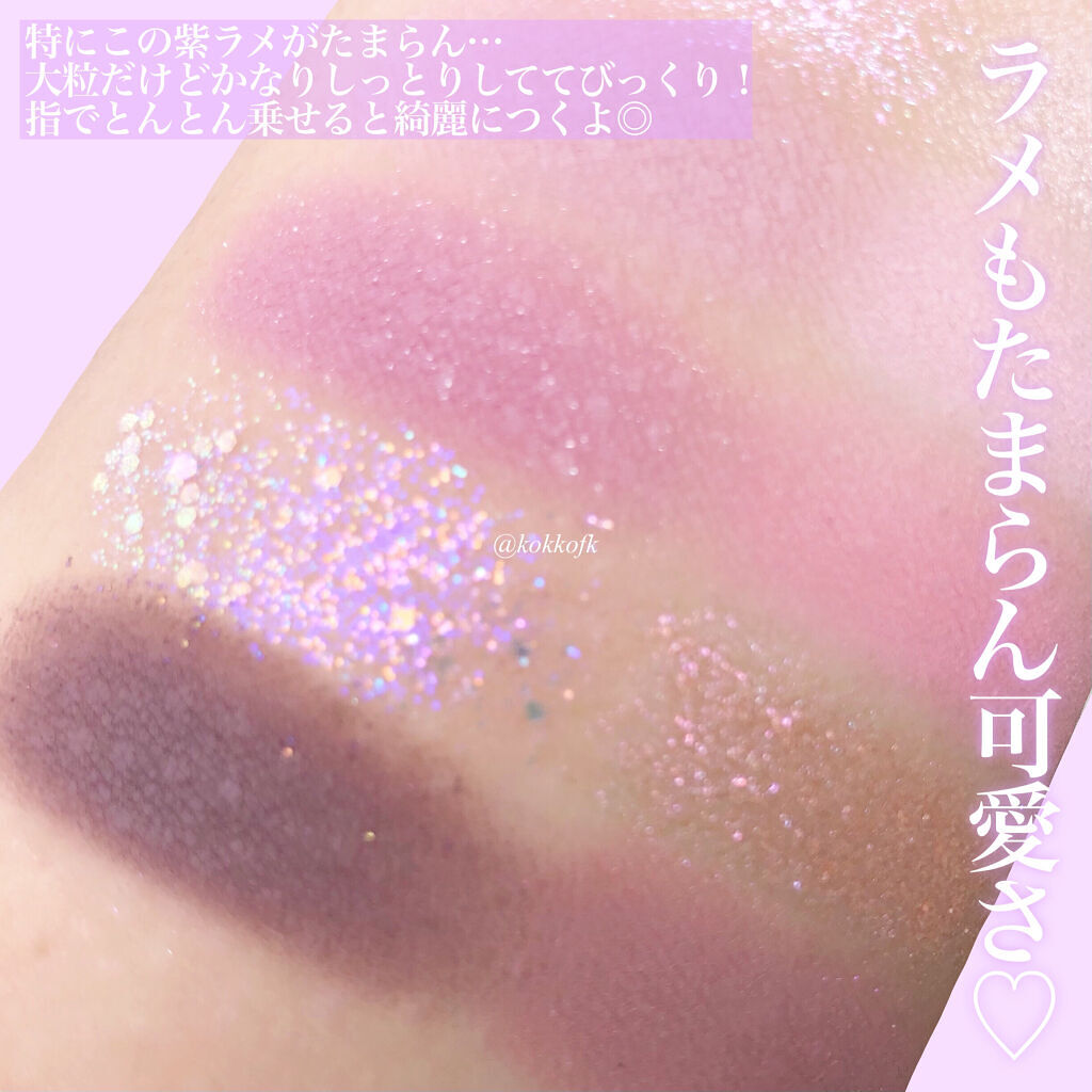 | アイシャドウパレットランキング第4位 | 粉質もしっとり高密着でラメがキラキラ大粒めで可愛い♡ | 詳細を見る | |