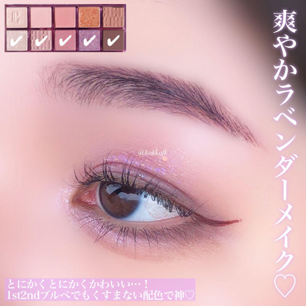 W デイリームードアップパレット01 ソフトモーブピンク (¥2420) プロ アイ パレット13 PICNIC BY THE SUNSET, グラムチェンジマルチパレット04 ユニコーンピンク (¥1890) グリッターぺディアアイパレットN°4 オールラベンダーフォグ (¥2950) シャドウパレット16 バイオレットニット (¥3610) ベターザンパレット06 PEONY NUDE GARDEN, 09 DREAMY LILAC GARDEN (¥2900)
