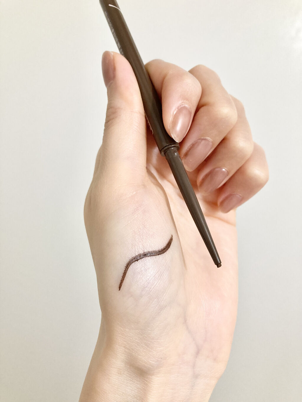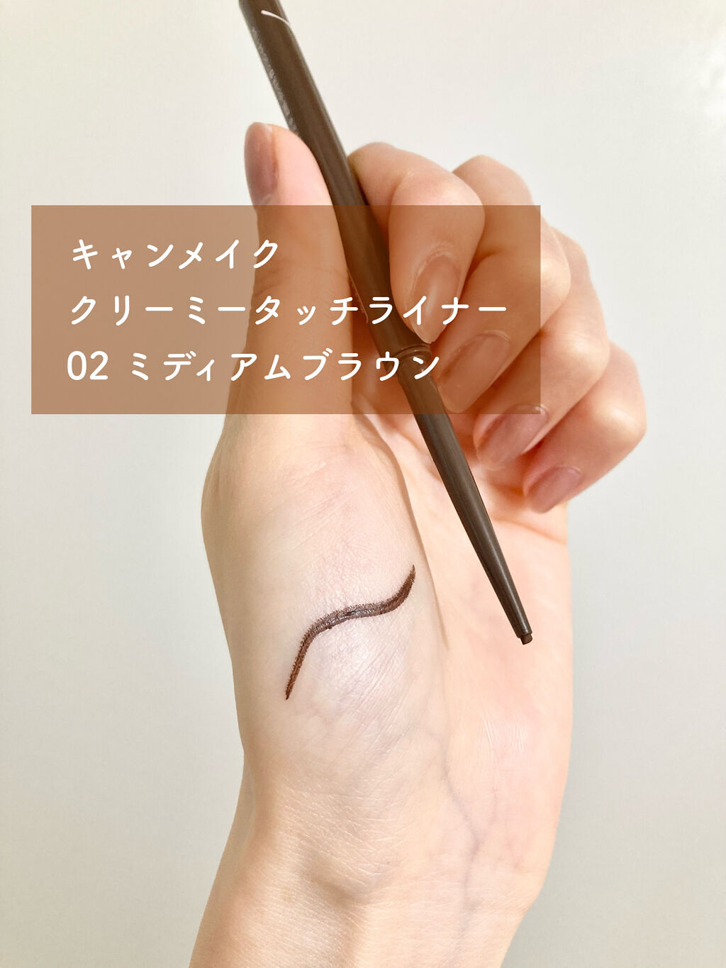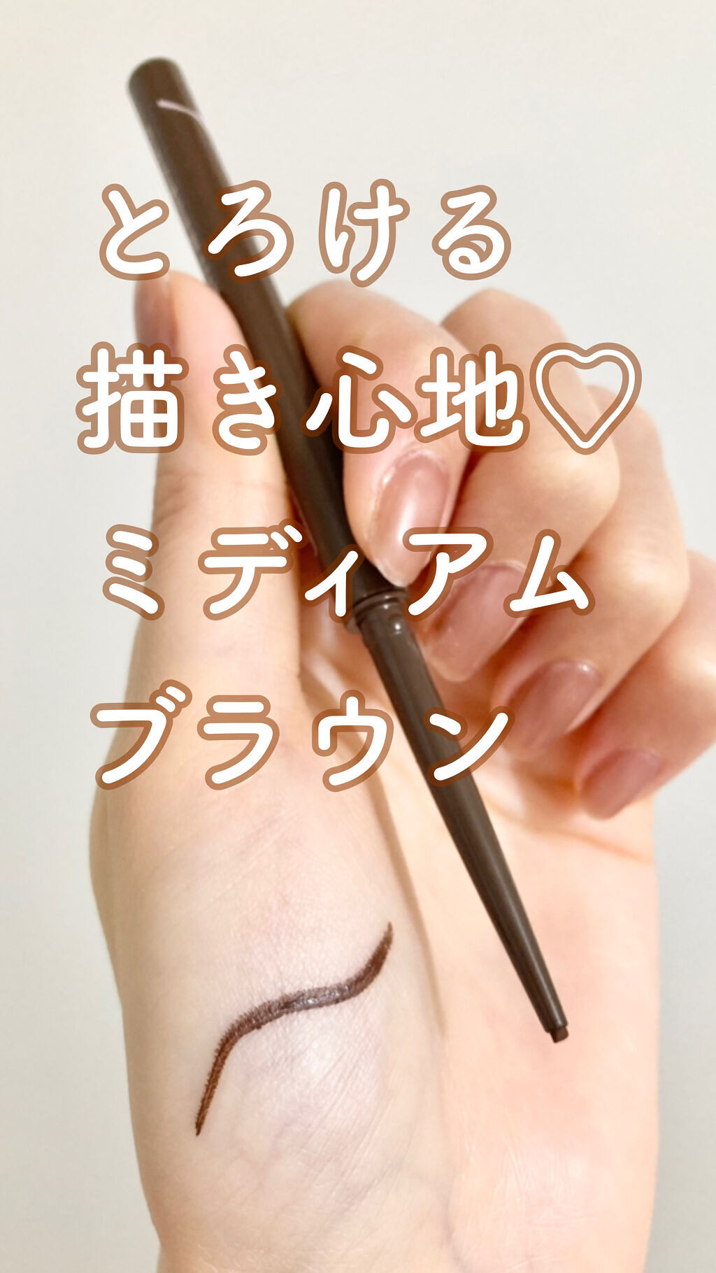 とにかくなめらかな描き心地が手放せなくなります。 発色も良く長時間色落ちしない。カラーが豊富でプチプラなので使い分けできる。 02ミディアムブラウンは濃いブラウンで垢抜けつつ目元もしっかり締まるオススメカラーです😊