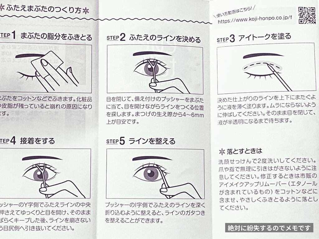 - 液体タイプのふたえまぶた化粧品。 まぶたに塗って、専用のプッシャーで押さえるだけで、簡単に美しいふたえがつくれます。 ●優れた耐久性 汗・水・涙・皮脂に強いウォータープルーフ処方。 ●長時間キープ 接着力に優れた内容液で美しいふたえまぶたを長時間キープできます。 ●便利な2WAYプッシャー付き ●保湿成分配合 浸透型※1ヒアルロン酸 植物性コラーゲン※2 羽衣草エキス※3 ※1 角層まで ※2 ナットウガム ※3ハゴロモグサ葉エキス ●無香料・無着色・ラテックスフリー