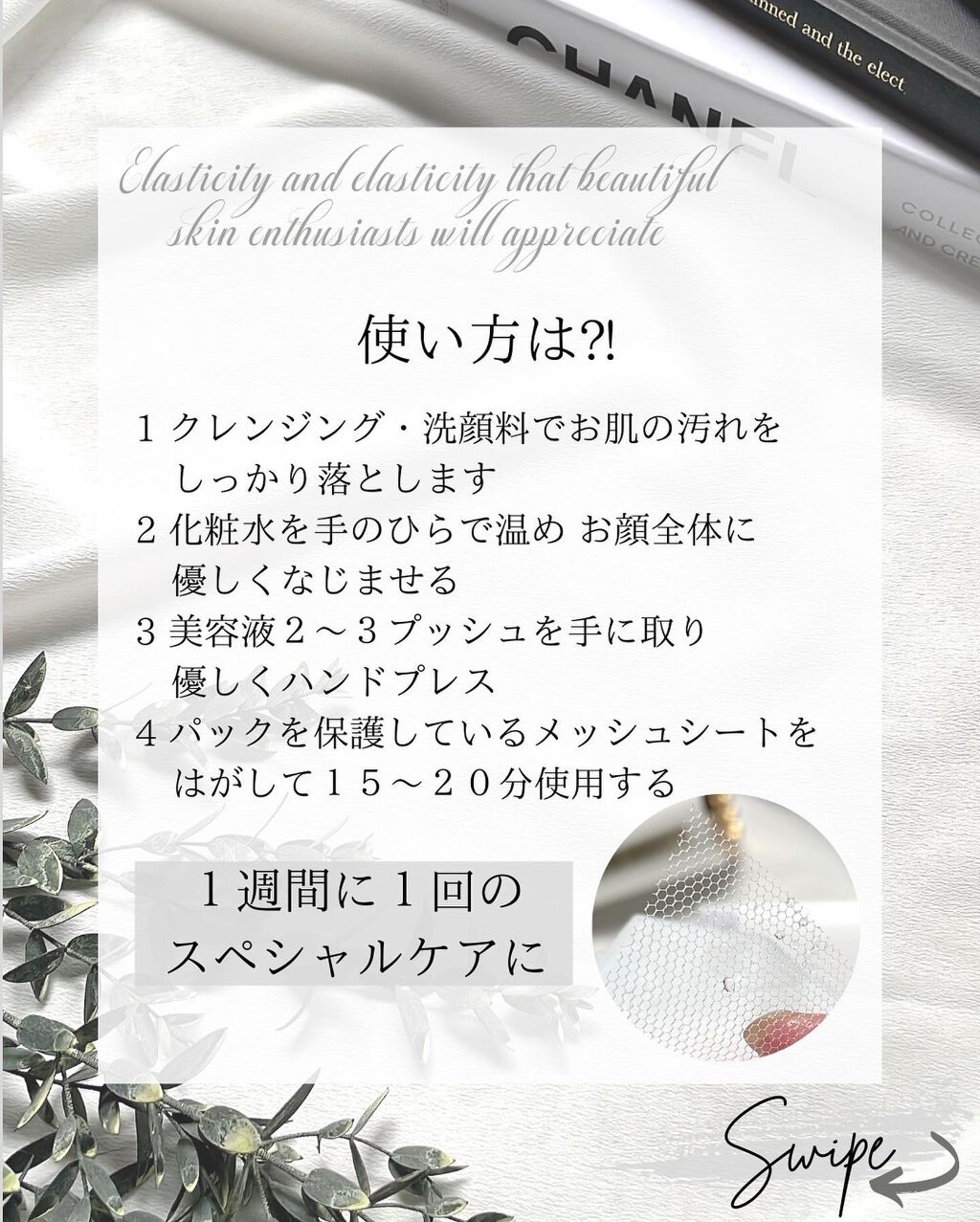 - ヒト幹細胞培養液*と7種類の美容成分を用いた美容液マスクです。 エイジングケア**やスペシャルケアとして、いつものケアにプラス。 ▼こんな方におすすめ▼ ▪キメやハリ、弾力が気になる ▪お肌の乾燥が気になる ▪目元、口元あたりの悩みが増えた ▪肌を整えたい ▪透明感のある肌になりたい ▪お肌の毛穴が目立つ ▪若々しい印象を保ちたい ▪近々大事なイベントがある *ヒト脂肪細胞順化培養液のこと **年齢に応じたお手入れ