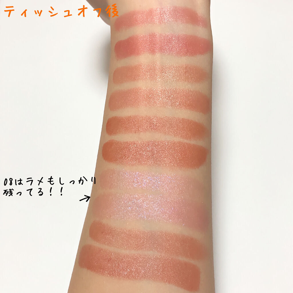 - <01 欲望の塊> テトライソステアリン酸ジペンタエリスリチル、トリ(カプリル酸/カプリン酸)グリセリル、オクチルドデカノール、ラウロイルグルタミン酸ジ(フィトステリル/オクチルドデシル)、ビスアルキル(C16-18)グリセリルウンデシルジメチコン、イソノナン酸イソトリデシル、水添ポリイソブテン、ラウロイルグルタミン酸ジ(オクチルドデシル/フィトステリル/ベヘニル)、パラフィン、合成ワックス、ダイマージリノール酸(フィトステリル/イソステアリル/セチル/ステアリル/ベヘニル)、マイクロクリスタリンワックス、水添マイクロクリスタリンワックス、ヒドロキシステアリン酸エチルヘキシル、トコフェロール、ホホバ種子油、オリーブ果実油、アーモンド油、(エチレン/プロピレン)コポリマー、ポリエチレン、ジメチコン、(+/-)(チタン/酸化チタン)焼結物、マイカ、ラウロイルアスパラギン酸Na、ラウロイルリシン、塩化亜鉛、酸化チタン、酸化鉄、水酸化Al、硫酸Ba、トリイソステアリン酸イソプロピルチタン、酸化スズ、ホウケイ酸(Ca/Al)、合成フルオロフロゴパイト、黄4、黄5、赤104(1)、赤201、赤202 <02 ピンクバナナ> テトライソステアリン酸ジペンタエリスリチル、トリ(カプリル酸/カプリン酸)グリセリル、オクチルドデカノール、ラウロイルグルタミン酸ジ(フィトステリル/オクチルドデシル)、ビスアルキル(C16-18)グリセリルウンデシルジメチコン、イソノナン酸イソトリデシル、水添ポリイソブテン、ラウロイルグルタミン酸ジ(オクチルドデシル/フィトステリル/ベヘニル)、パラフィン、合成ワックス、ダイマージリノール酸(フィトステリル/イソステアリル/セチル/ステアリル/ベヘニル)、マイクロクリスタリンワックス、水添マイクロクリスタリンワックス、ヒドロキシステアリン酸エチルヘキシル、トコフェロール、ホホバ種子油、オリーブ果実油、アーモンド油、(エチレン/プロピレン)コポリマー、ポリエチレン、ジメチコン、(+/-)(チタン/酸化チタン)焼結物、マイカ、ラウロイルアスパラギン酸Na、ラウロイルリシン、塩化亜鉛、酸化チタン、酸化鉄、水酸化Al、硫酸Ba、トリイソステアリン酸イソプロピルチタン、酸化スズ、ホウケイ酸(Ca/Al)、合成フルオロフロゴパイト、黄4、黄5、赤104(1)、赤201、赤202 <03 陽炎> テトライソステアリン酸ジペンタエリスリチル、トリ(カプリル酸/カプリン酸)グリセリル、オクチルドデカノール、ラウロイルグルタミン酸ジ(フィトステリル/オクチルドデシル)、ビスアルキル(C16-18)グリセリルウンデシルジメチコン、イソノナン酸イソトリデシル、水添ポリイソブテン、ラウロイルグルタミン酸ジ(オクチルドデシル/フィトステリル/ベヘニル)、パラフィン、合成ワックス、ダイマージリノール酸(フィトステリル/イソステアリル/セチル/ステアリル/ベヘニル)、マイクロクリスタリンワックス、水添マイクロクリスタリンワックス、ヒドロキシステアリン酸エチルヘキシル、トコフェロール、ホホバ種子油、オリーブ果実油、アーモンド油、(エチレン/プロピレン)コポリマー、ポリエチレン、ジメチコン、(+/-)(チタン/酸化チタン)焼結物、マイカ、ラウロイルアスパラギン酸Na、ラウロイルリシン、塩化亜鉛、酸化チタン、酸化鉄、水酸化Al、硫酸Ba、トリイソステアリン酸イソプロピルチタン、酸化スズ、ホウケイ酸(Ca/Al)、合成フルオロフロゴパイト、黄4、黄5、赤104(1)、赤201、赤202 <04 パンプキンワイン> テトライソステアリン酸ジペンタエリスリチル、トリ(カプリル酸/カプリン酸)グリセリル、オクチルドデカノール、ラウロイルグルタミン酸ジ(フィトステリル/オクチルドデシル)、ビスアルキル(C16-18)グリセリルウンデシルジメチコン、イソノナン酸イソトリデシル、水添ポリイソブテン、ラウロイルグルタミン酸ジ(オクチルドデシル/フィトステリル/ベヘニル)、パラフィン、合成ワックス、ダイマージリノール酸(フィトステリル/イソステアリル/セチル/ステアリル/ベヘニル)、マイクロクリスタリンワックス、水添マイクロクリスタリンワックス、ヒドロキシステアリン酸エチルヘキシル、トコフェロール、ホホバ種子油、オリーブ果実油、アーモンド油、(エチレン/プロピレン)コポリマー、ポリエチレン、ジメチコン、(+/-)(チタン/酸化チタン)焼結物、マイカ、ラウロイルアスパラギン酸Na、ラウロイルリシン、塩化亜鉛、酸化チタン、酸化鉄、水酸化Al、硫酸Ba、トリイソステアリン酸イソプロピルチタン、酸化スズ、ホウケイ酸(Ca/Al)、合成フルオロフロゴパイト、黄4、黄5、赤104(1)、赤201、赤202 <05 ダークフィグ> テトライソステアリン酸ジペンタエリスリチル、トリ(カプリル酸/カプリン酸)グリセリル、オクチルドデカノール、ラウロイルグルタミン酸ジ(フィトステリル/オクチルドデシル)、ビスアルキル(C16-18)グリセリルウンデシルジメチコン、イソノナン酸イソトリデシル、水添ポリイソブテン、ラウロイルグルタミン酸ジ(オクチルドデシル/フィトステリル/ベヘニル)、