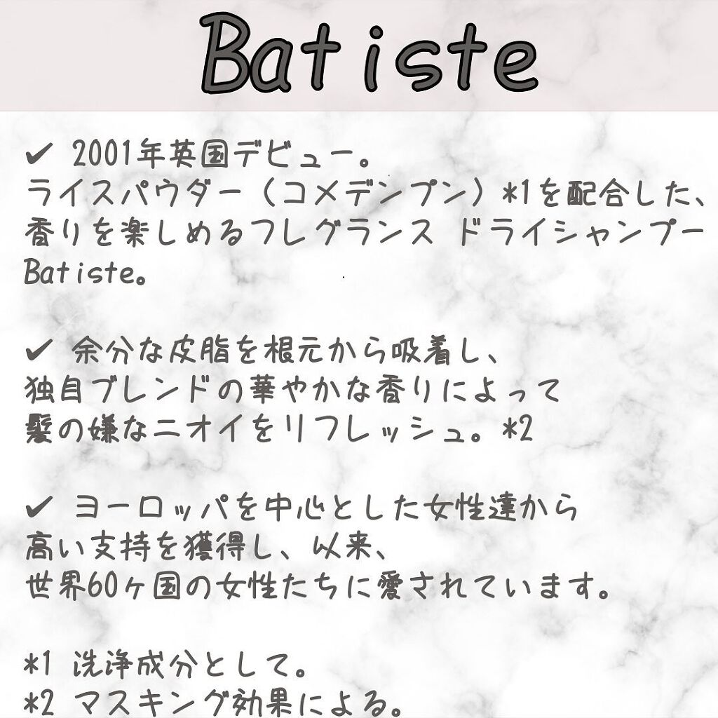 バティスト バティスト ドライシャンプー フレグランスフリー | 1,650円 |