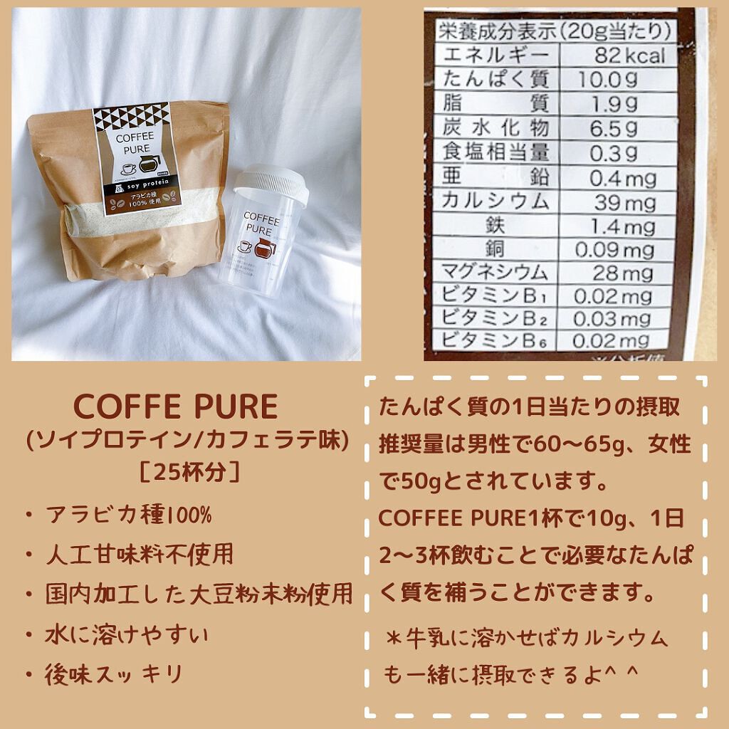 コエタスのモニターキャンペーンでいただきました株式会社ピュアパートナーソイプロテイン【COFFEEPURE】についてのレビューです。 COFFEEPUREは、人工甘味料不使用で国内加工した大豆粉末を使用したカフェラテ味のソイプロテインです...